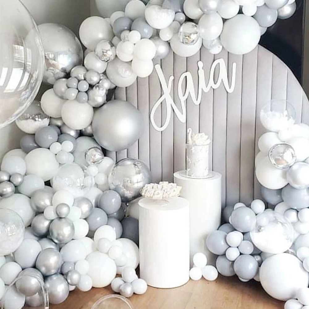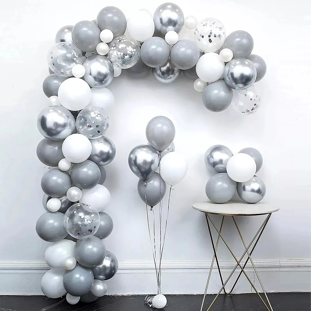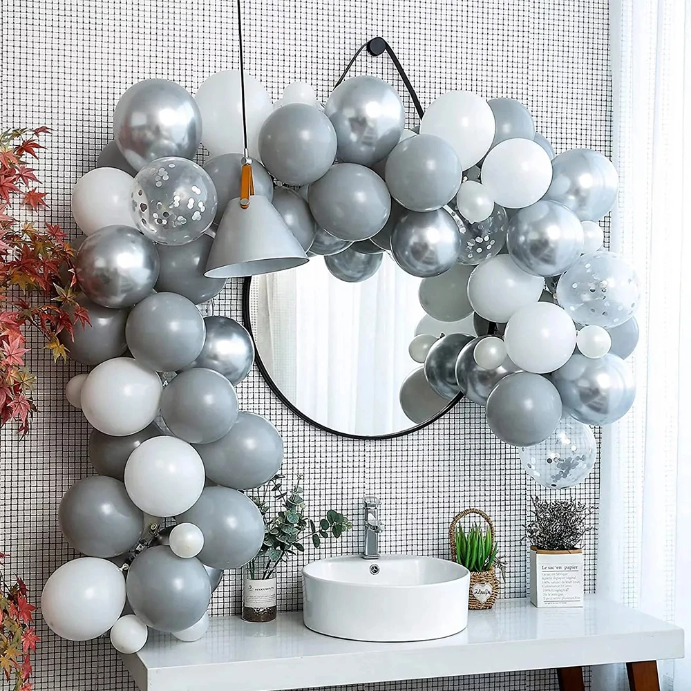 82 шт., воздушные шары из комплект гирлянды алюминиевой фольги, серого и белого цветов, металлик, серебристый, шары для свадьбы и дня рождения