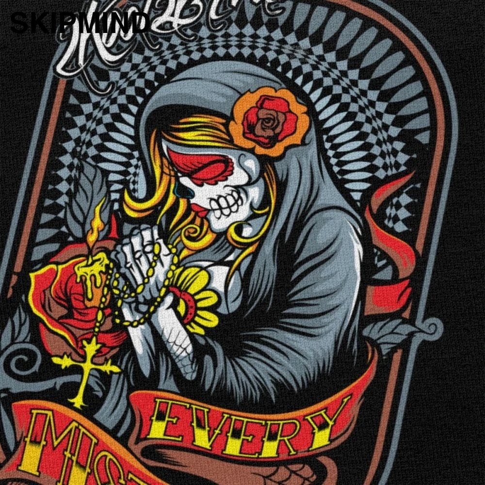 Santa Muerte 13 футболки Для мужчин хлопок леди Святой смерти футбо...