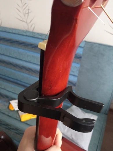 Отличный товар, хороший вид. Присутствуют, конечно, потёртости и сколы, но это мелочь. Зажимает классическую гитару на все 5 баллов. Буду заказывать ещё (шутка, не буду, одного хватило)