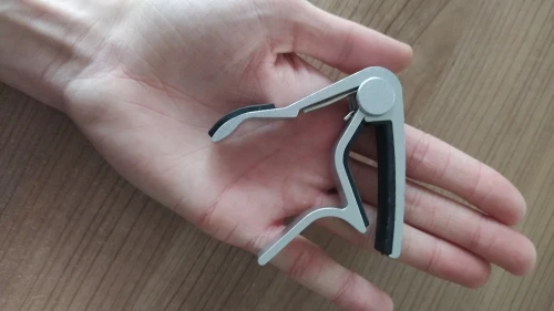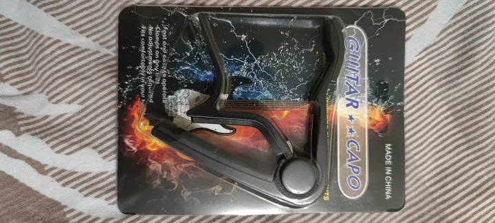 Каподастр отличный, всё как в описании. На деле работает как надо, выжимает все струны. НО, хочу сразу предупредить что для классической гитары она не подойдёт, не до конца выжимается последняя струна. Этот каподастр исключительно для акустической гитары. В остальном просто шикарная вещь. приятный на вид, качественная сборка, тяжеленький на вес, корпус металлический (алюминий вроде) и пружина самое то. В общем достойно рекомендации. Спасибо.