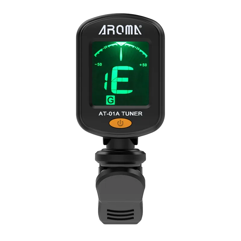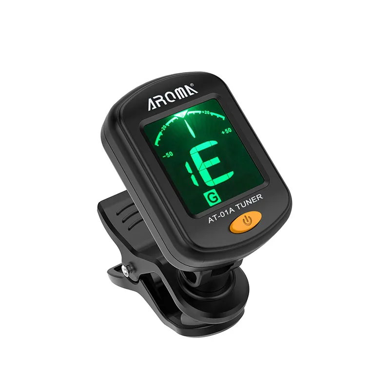 Aroma AT-01A, хороший, компактный, гитарный тюнер. Заказываю не первый раз. Удобное, надёжное крепление, позволяет быстро и точно, настроить инструмент, даже в шумном помещений. Дисплей загорается зелёным цветом, и отображает ноту, когда звучит требуемый тон струны. Тюнер пришел, через три недели, после заказа. К сожалению, батарейка в комплект, не входит, надо докупать отдельно (артикул CR2032). Рекомендую к покупке.