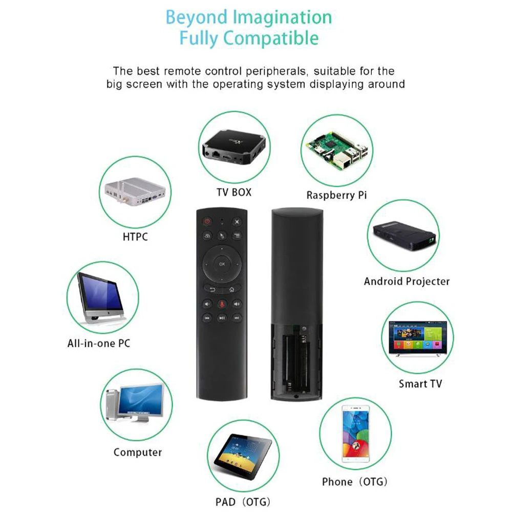 (1) Поддержка Android TV Box, Mini PC, PC, Tablet. (2 аккумулятора xAAA не входят в комплект)