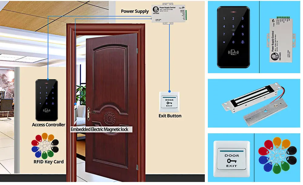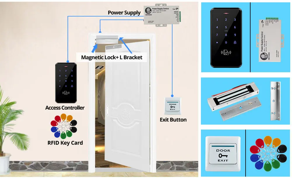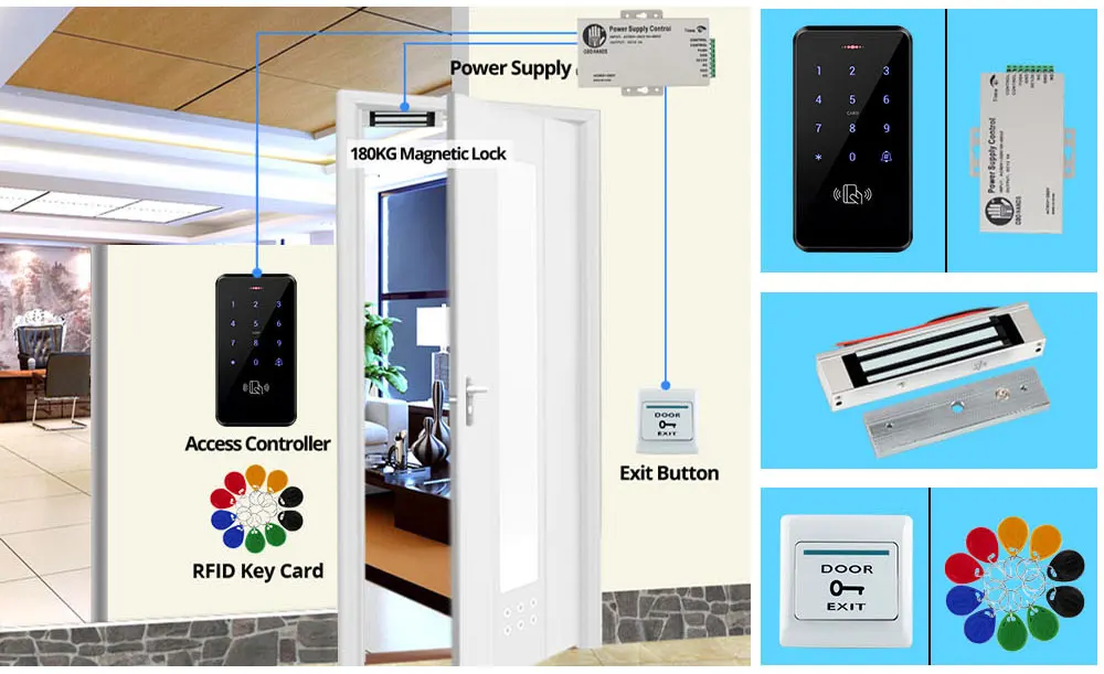 Водонепроницаемая система контроля доступа 125 кГц с сенсорным управлением IP68, RFID 3000, система управления доступом пользователя, рама, комплект стеклянной двери + электронный замок
