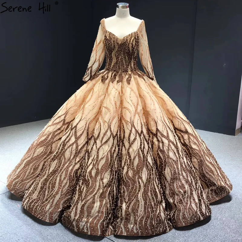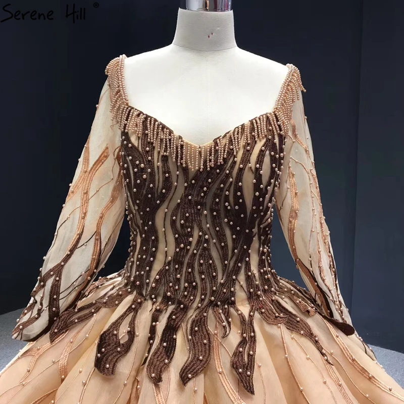 Золотисто-коричневый жемчуг дизайн размера плюс свадебные платья 2020 с длинными рукавами сексуальные Элитные Свадебные платья BHA2352 Couture Платье