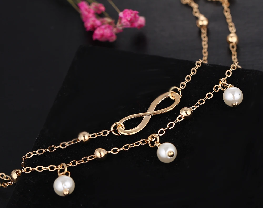 Браслет на ногу cmoonry, модная двухцветная Цепочка-анклет с кулоном из искусственного жемчуга, Изящные Ювелирные изделия для ног, 2 цвета