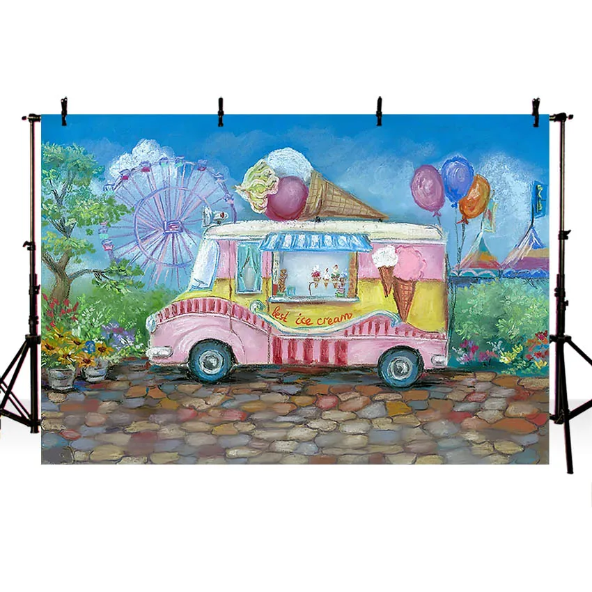Фон для фотосъемки новорожденных детей с изображением мороженого и грузовика реквизит для фотостудии реквизит для фотосессии
