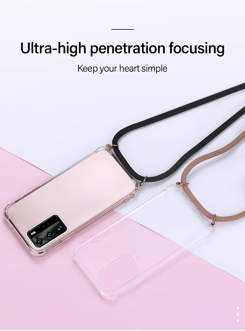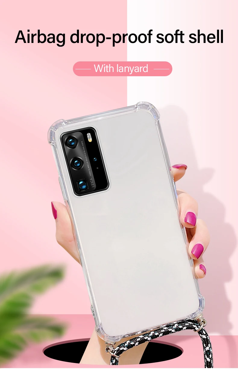 Роскошный силиконовый чехол со шнурком для телефона Huawei P40 P30 P20 P10 Lite Mate 30 20 10 Pro Honor, Ультратонкий чехол с ожерельем и веревкой