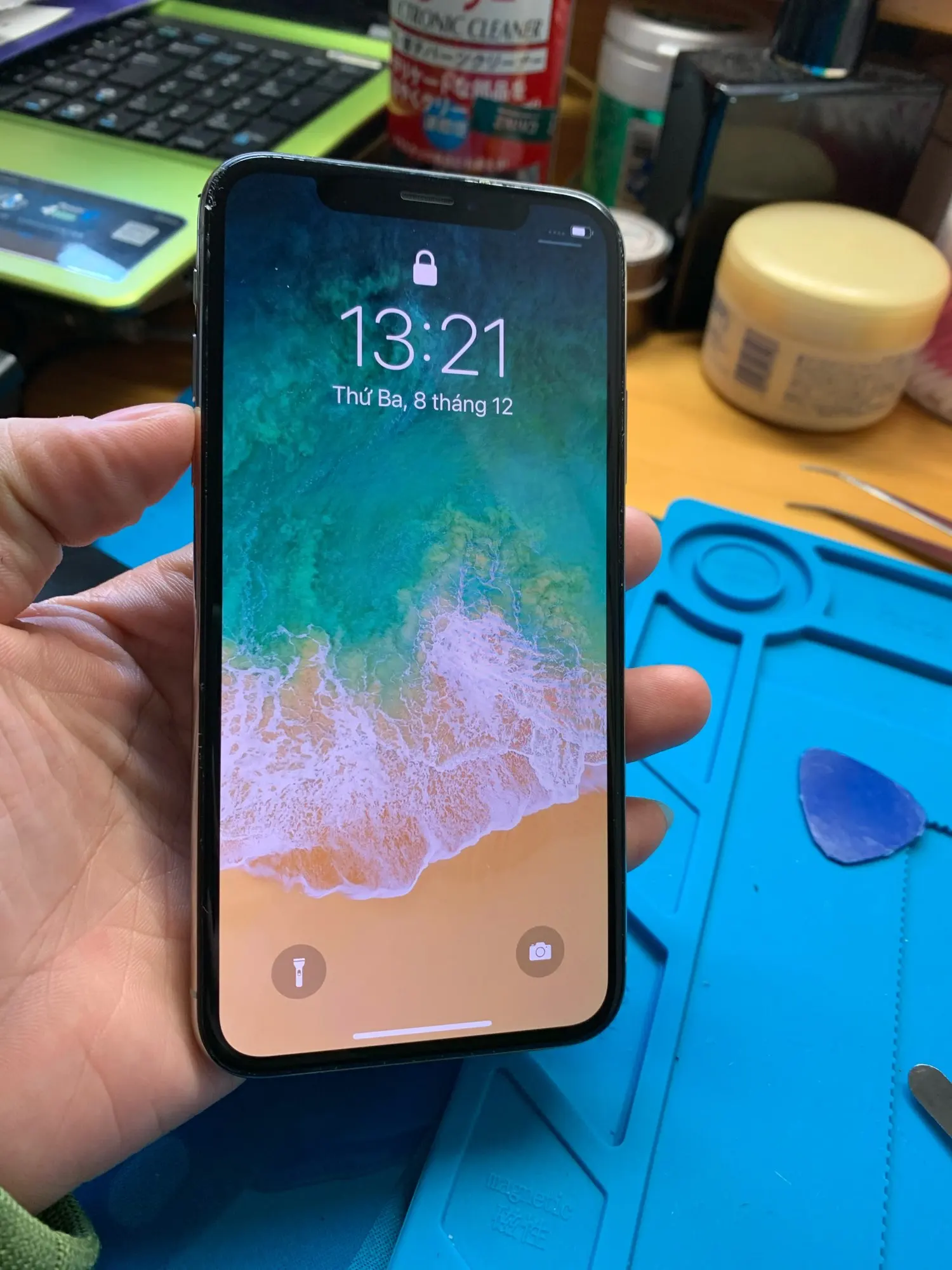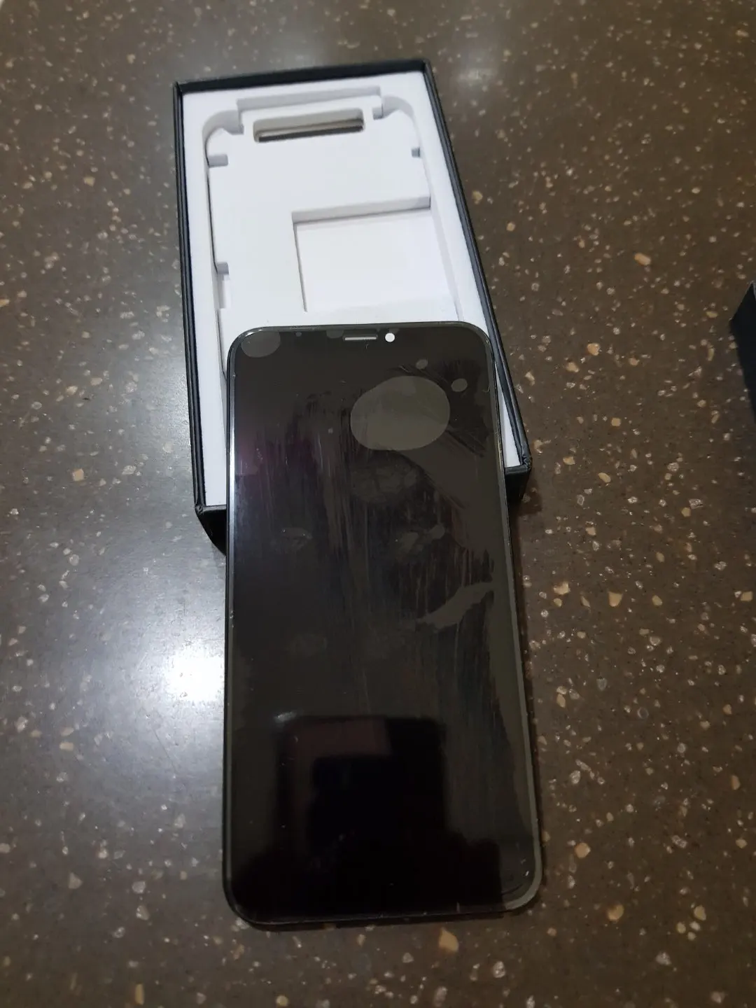 Дисплей в порядке, пришел с чехлом,защитным стеклом,проклейкой и набором для ремонта. Face id работает, true tone нужно прошивать. Качество дисплея хорошее, слегка жирная рамка в нижних углах,но за свои деньги отлично.