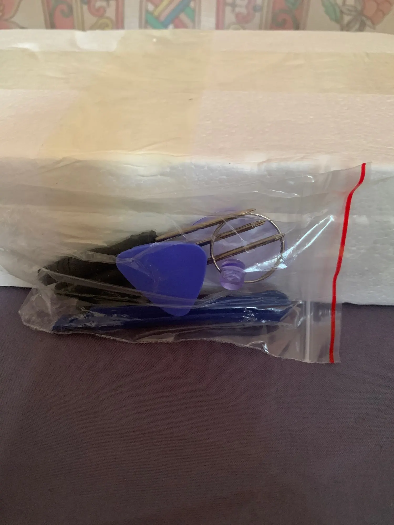 У него нет качества оригинального экрана, но он работает нормально. Черные не отличные, но качество изображения хорошее. На задней стороне экрана не было защитной бумаги, и один из элементов был снят, но он может быть зафиксирован. Дополнительные элементы: инструменты и протекторы ценятся. Настоящий тон не работает.