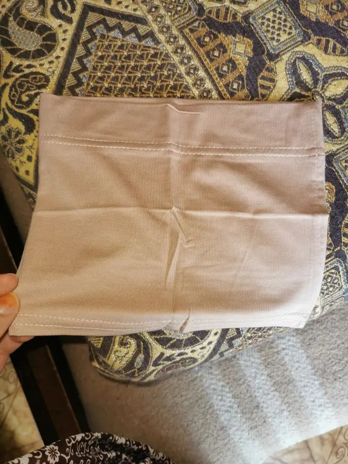 Доставка две недели, материал приятный, хорошо сшито. Взяла для дома, очень удобно, особенно в жару подобрала волосы и кайф.