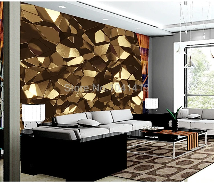 Современные 3D золотистые многоугольные геометрические обои для гостиной, ТВ, спальни, абстрактное искусство, настенная Фреска K, ТВ-бар, Креативные 3D обои