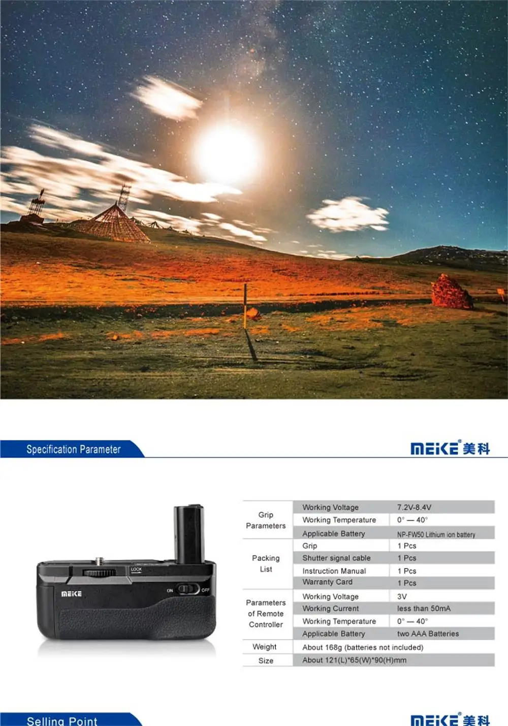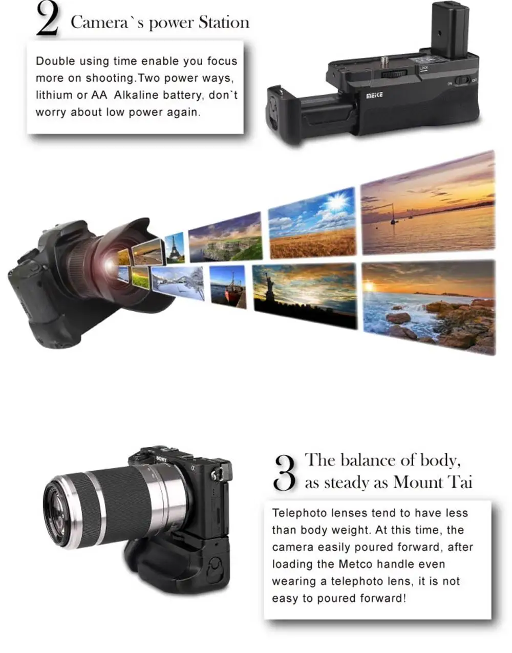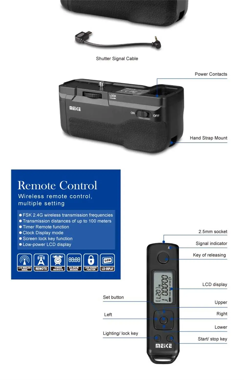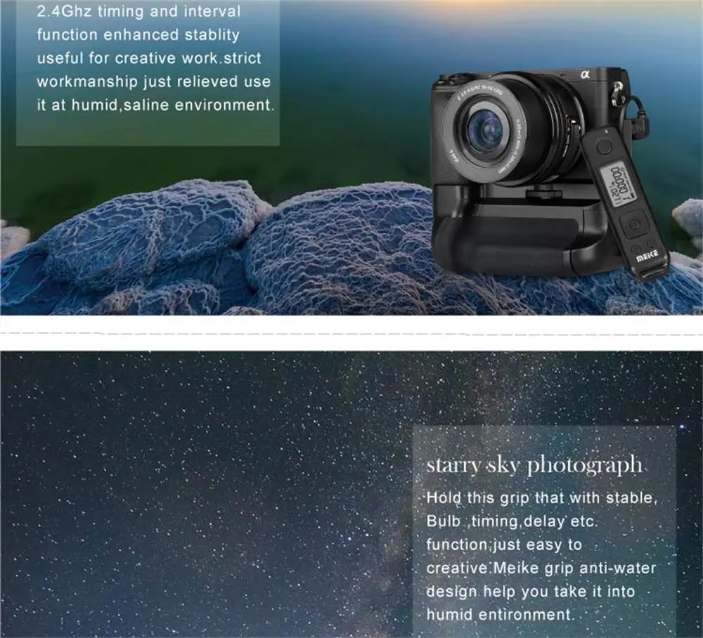 Батарейный блок с пультом дистанционного управления 2,4G беспроводной Meike A6300 Pro синхронизация двойной Срок службы батареи для беззеркальной камеры A6300 A6000 A6100