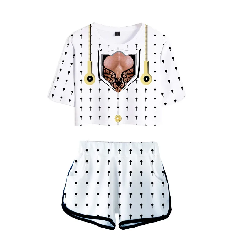 Костюм для косплея из аниме Невероятные приключения Джоджо, спортивный костюм для девочек, футболка с шортами и шорты для бега, женские комплекты