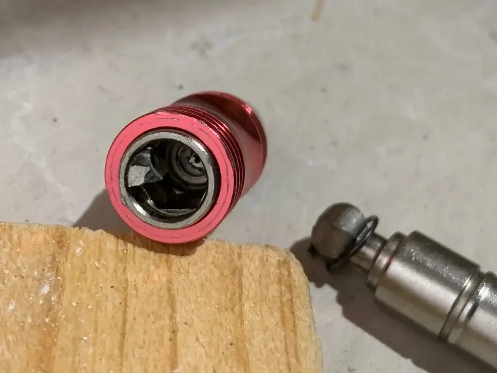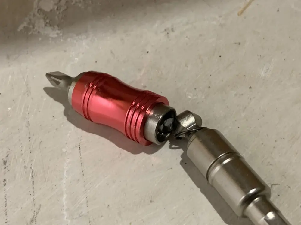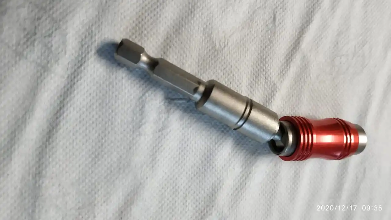 Держатель сделан качественно, биты держит прочно. Сдвинув муфту, можно изменить угол наклона.