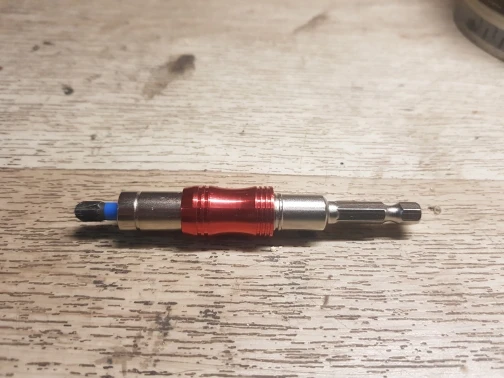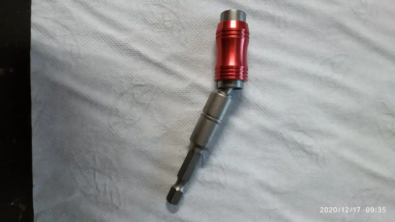Получил наконец то. Очень нужная для меня вещь должна быть. Так как придётся много крутить шурупов и загонять их под балку неудобно. Если пользоваться традиционными битами с удлинителями, то из-за балки их надо направлять под углом. А это не очень хорошо. А с этим инструментом получиться закручивать шурупы перпендикулярно. И это гуд.