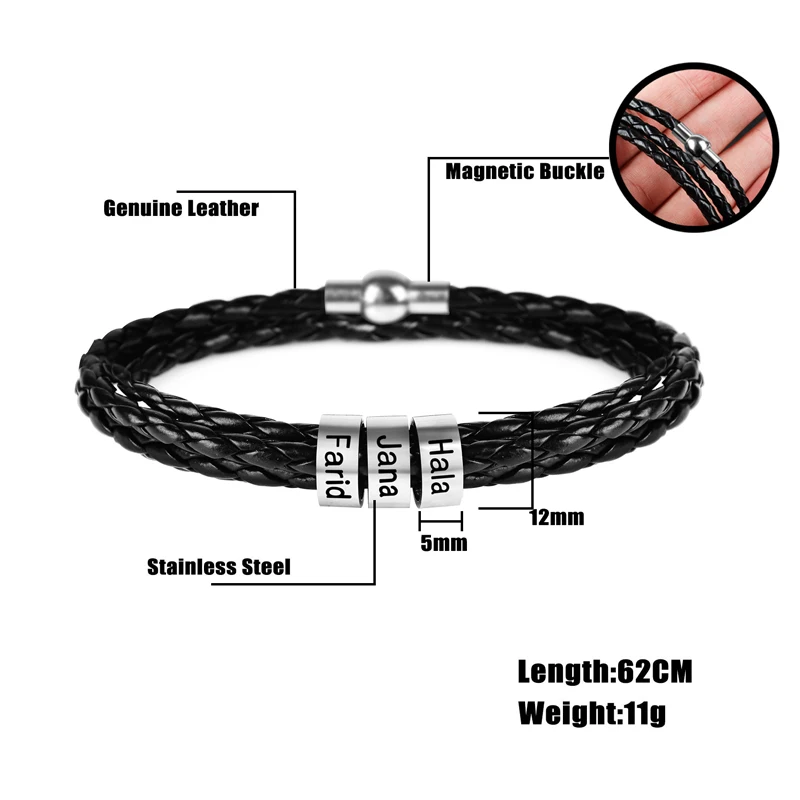 Браслет из натуральной кожи с индивидуальной гравировкой 1- 6 имена...