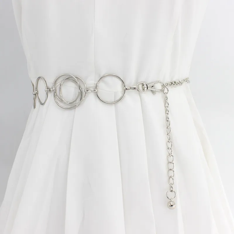 Ремень женский, с металлической цепочкой, золотистогосеребристого цвета