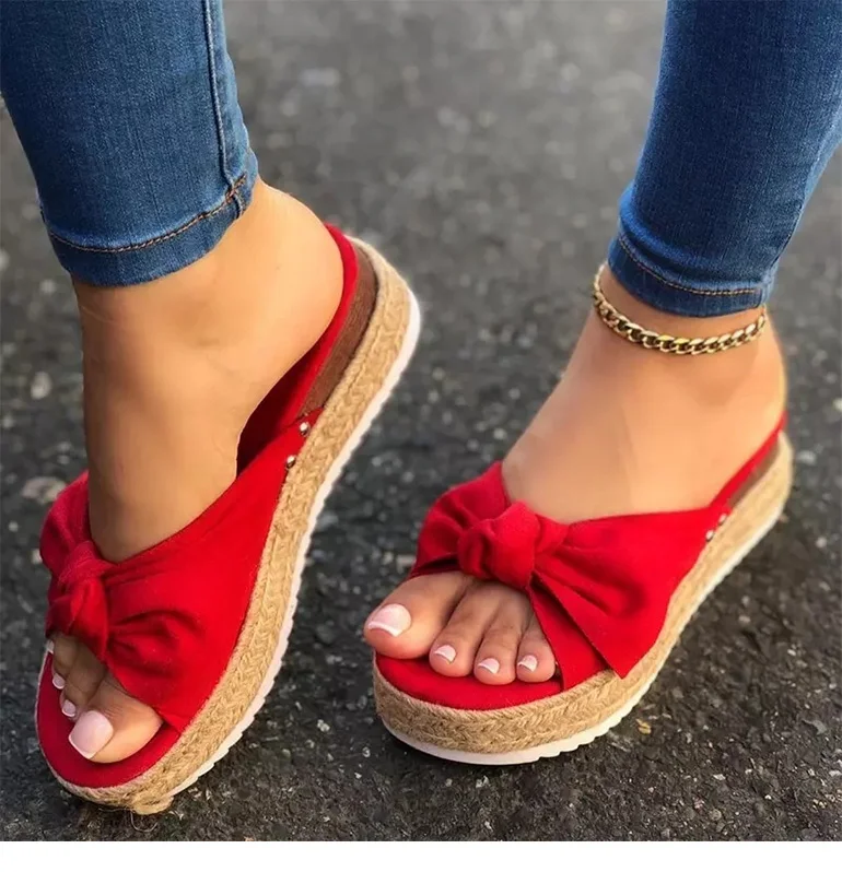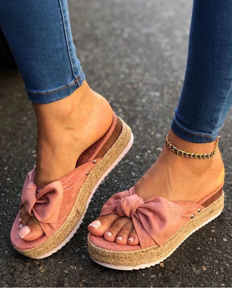 Сандалии женские на платформе, Пляжная Удобная винтажная замшевая обувь, повседневная Уличная обувь, с бантом, лето 2021