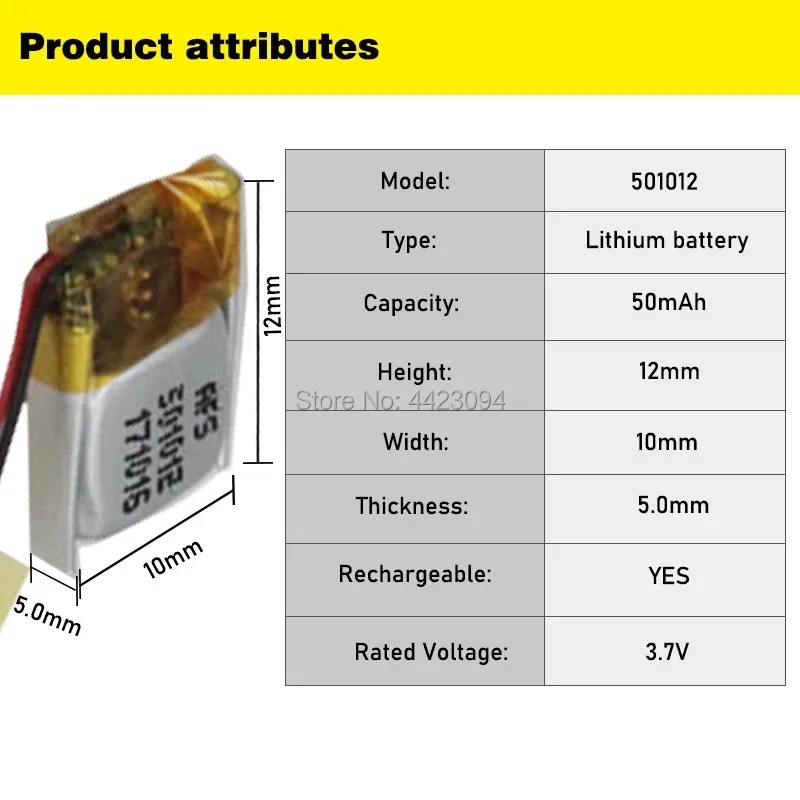 Литий-полимерный аккумулятор lipo 3,7 в, 50 мАч, 501012, перезаряжа...