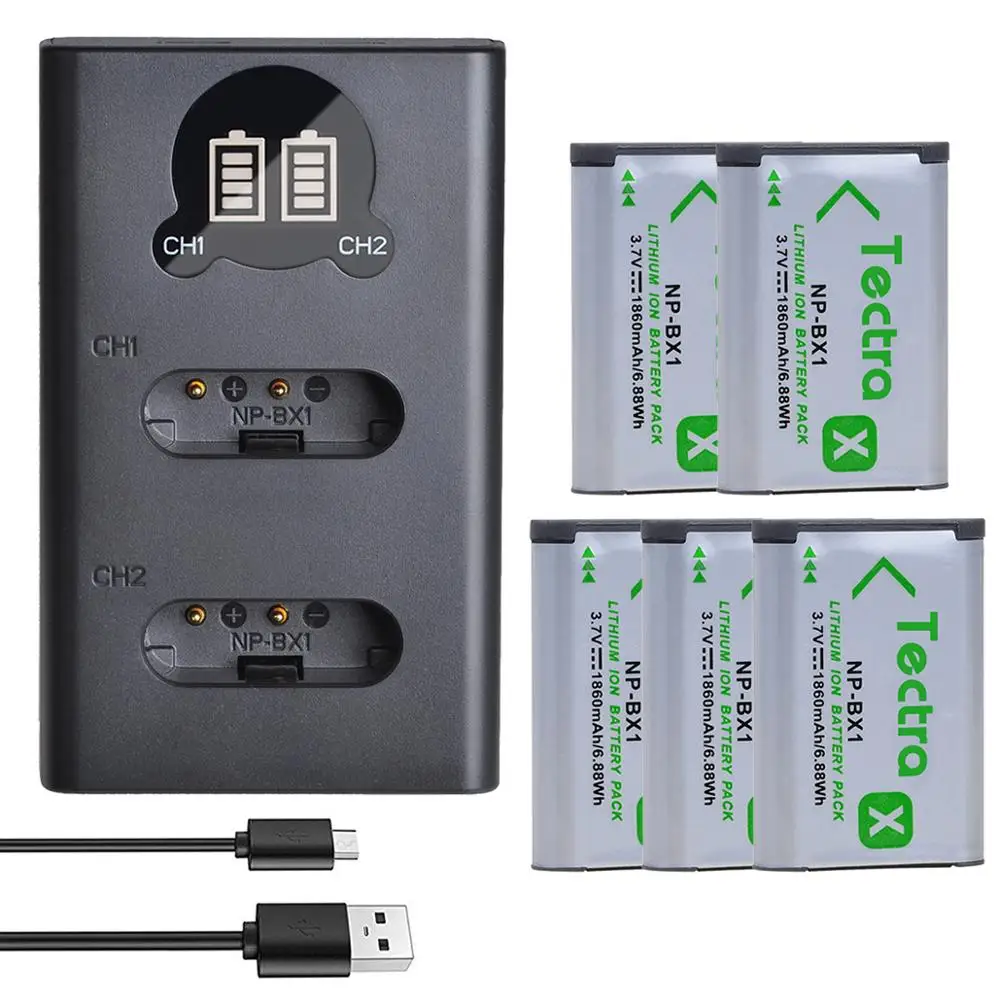 Аккумулятор NPBX1 на 1860 мА ч, 5 шт., со светодиодной подсветодиодный кой и USB-зарядным устройством для Sony HX300, HX400, HX50, HX60, GWP88, AS15, DSC RX1, RX100, AS100V, M2, BX1