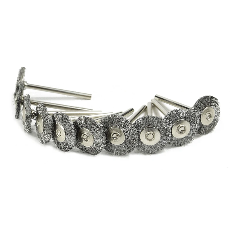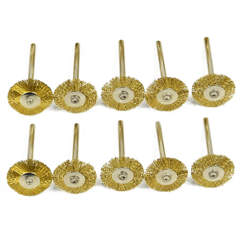 Набор щеток для полировки проволоки CMCP, 10 шт., 22 мм, хвостовик 3,0 мм, нержавеющая стальлатуньнейлон, для полировки и шлифовки Dremel, вращающиеся инструменты