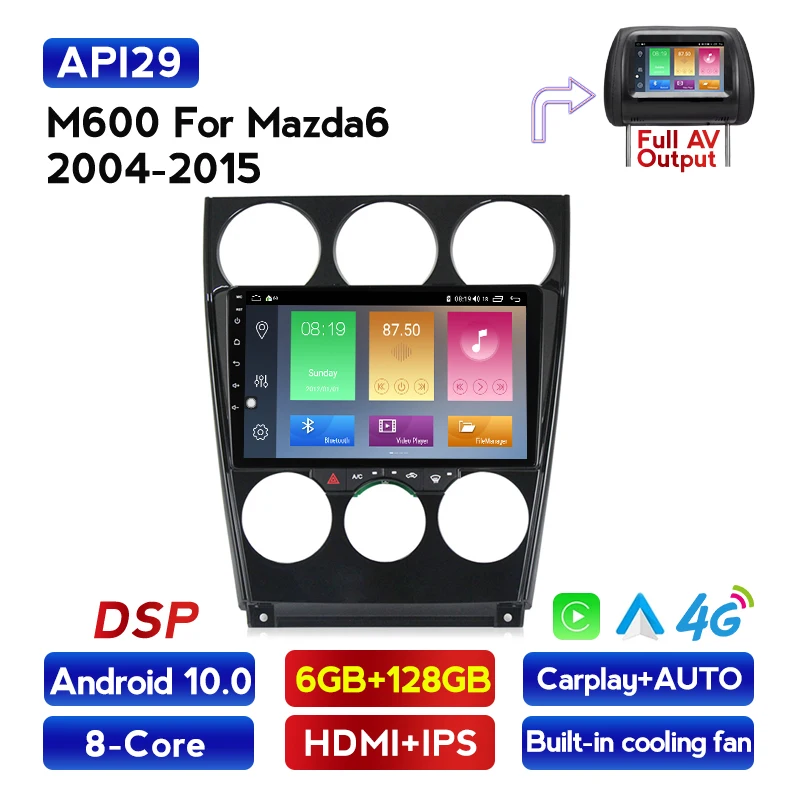 Мультимедийный проигрыватель для Mazda, мультимедийная система на Android, с 4G, LTE, DSP, GPS, Wi-Fi, BT, для Mazda 6, 2002, 2003, 2004, 2005, 2006, 2007, 2008, типоразмер 2DIN
