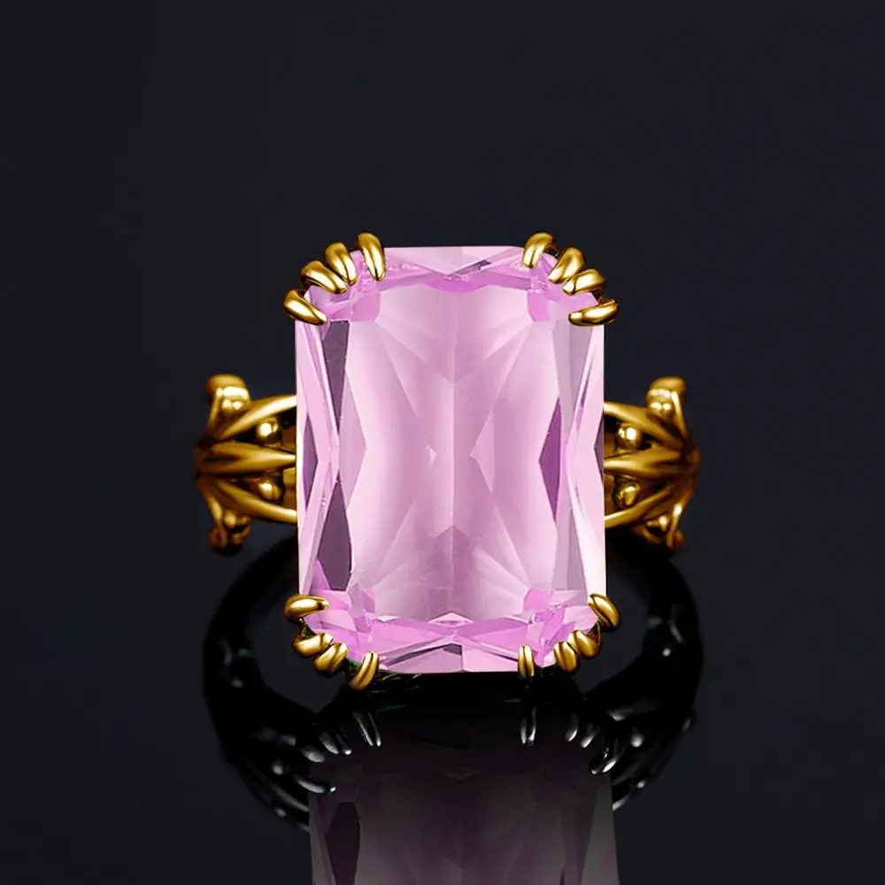 Бренд: Rosewood StoryТип камня: синтетический розовый кристаллОсновной камень Вес Размеры: 14,5*19 ммЧеткость камня: VVSЦвет камня: ПрозрачныйФорма камня: квадратнаяТип металла: твердый 925 пробы Серебряный + 18K позолоченныйMeatal Цвет: Желтое золотоТовар Вес: 5,5 гРазмер кольца: США #5,#6, #7,#8,#9,#10Упаковка:1 * Серебряная полировальная ткань,1 * Изысканная Подарочная коробка,1 * Кольцо с розовым кристаллом