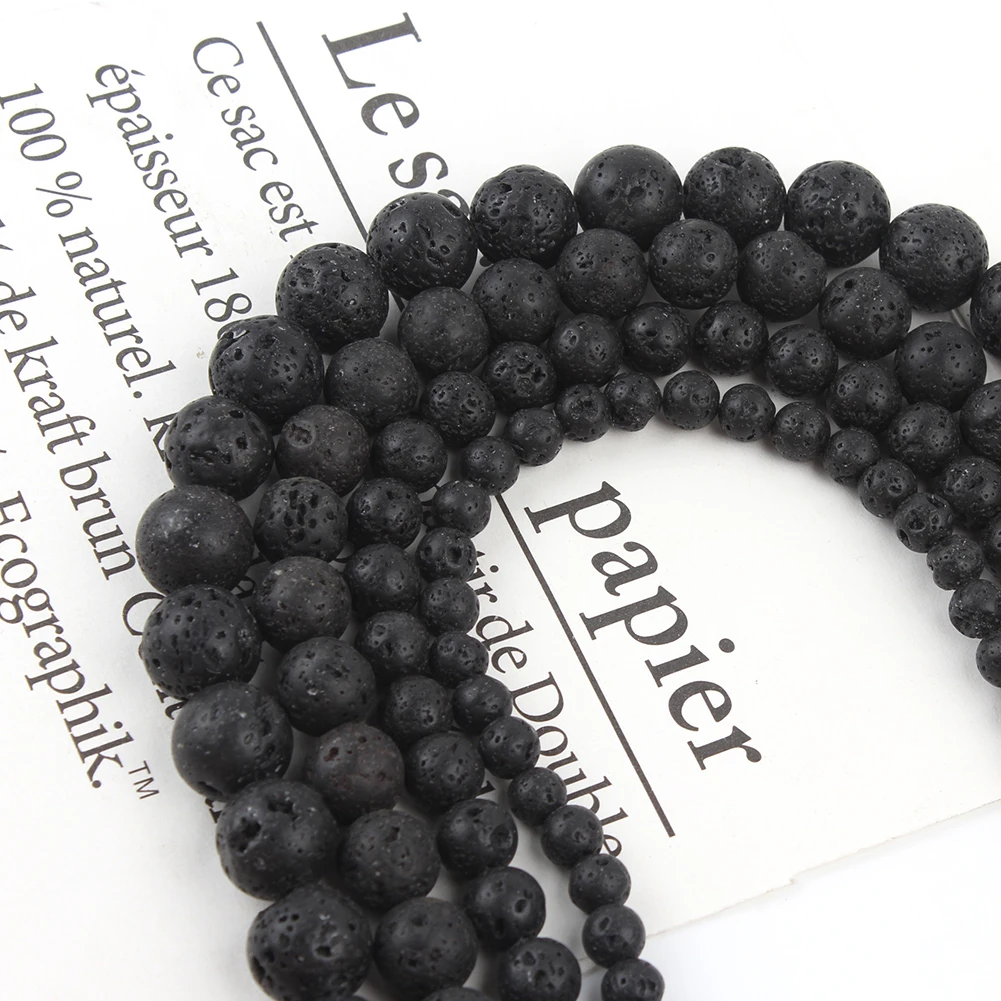 Круглые бусины вулканическая лава, 4681012 мм, 15 дюймов, 2 нити, натуральный черный камень для самостоятельного изготовления ювелирных изделий