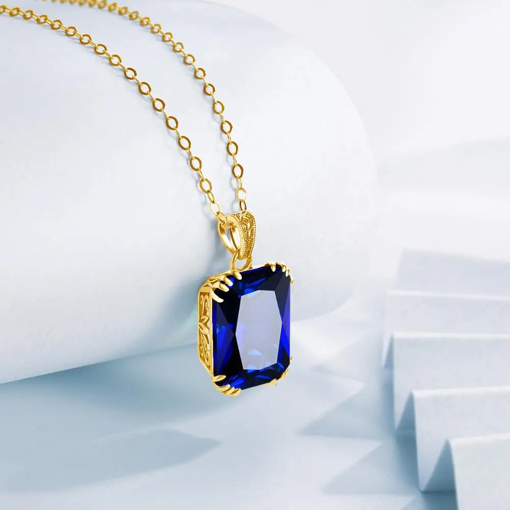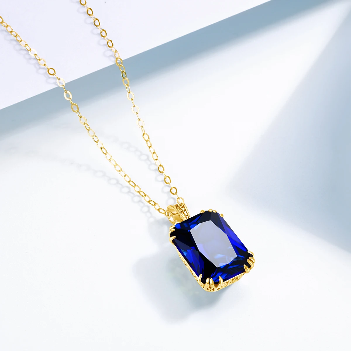 Синий камень кулоном женское колье из 14-каратного золота с S925 Серебряное колье Colgante сапфировые Ювелирные наборы для ухода за кожей в Bizuteria Подвески Pierscionki драгоценные камни