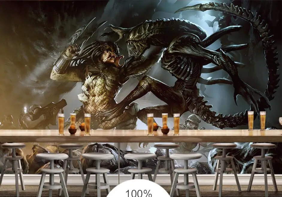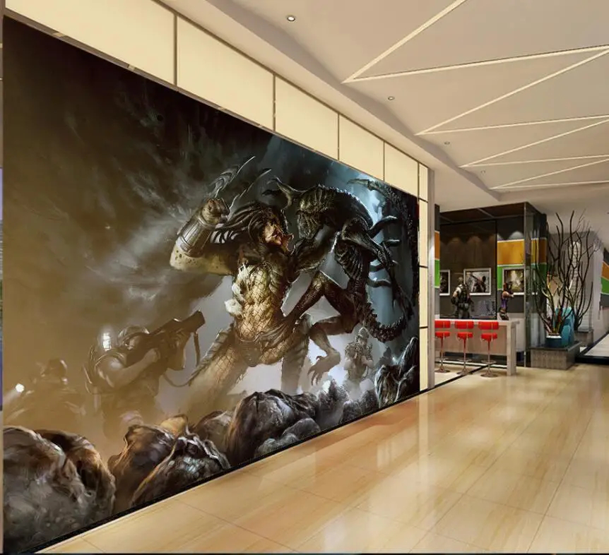 Фон CJSIR Alien Vs. Predator для игр, настенная живопись, на заказ, крупногабаритное дерево, Зеленая Шелковая ткань, обои, Декор