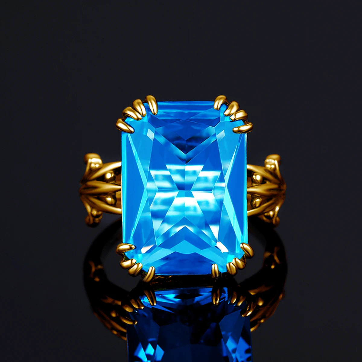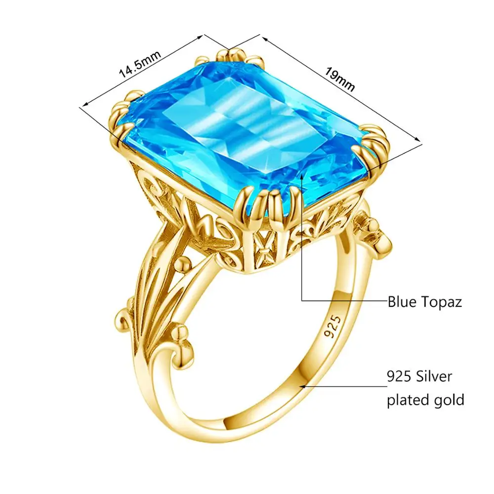 Бренд: Rosewood StoryТип камня: синтетический голубой топазОсновной камень Вес Размеры: 14,5*19 ммЧеткость камня: VVSЦвет камня: ПрозрачныйФорма камня: SqureТип металла: твердый 925 пробы Серебряный + 14K позолоченныйMeatal Цвет: Желтое золотоТовар Вес: 5,5 гДоступные размеры кольца: США #5,#6, #7,#8,#9,#10Упаковка:1 * Серебряная полировальная ткань,1 * Изысканная Подарочная коробка,1 * Голубой топаз драгоценный камень кольцо