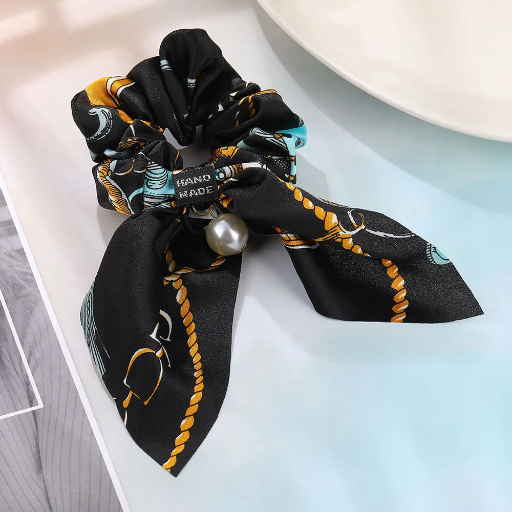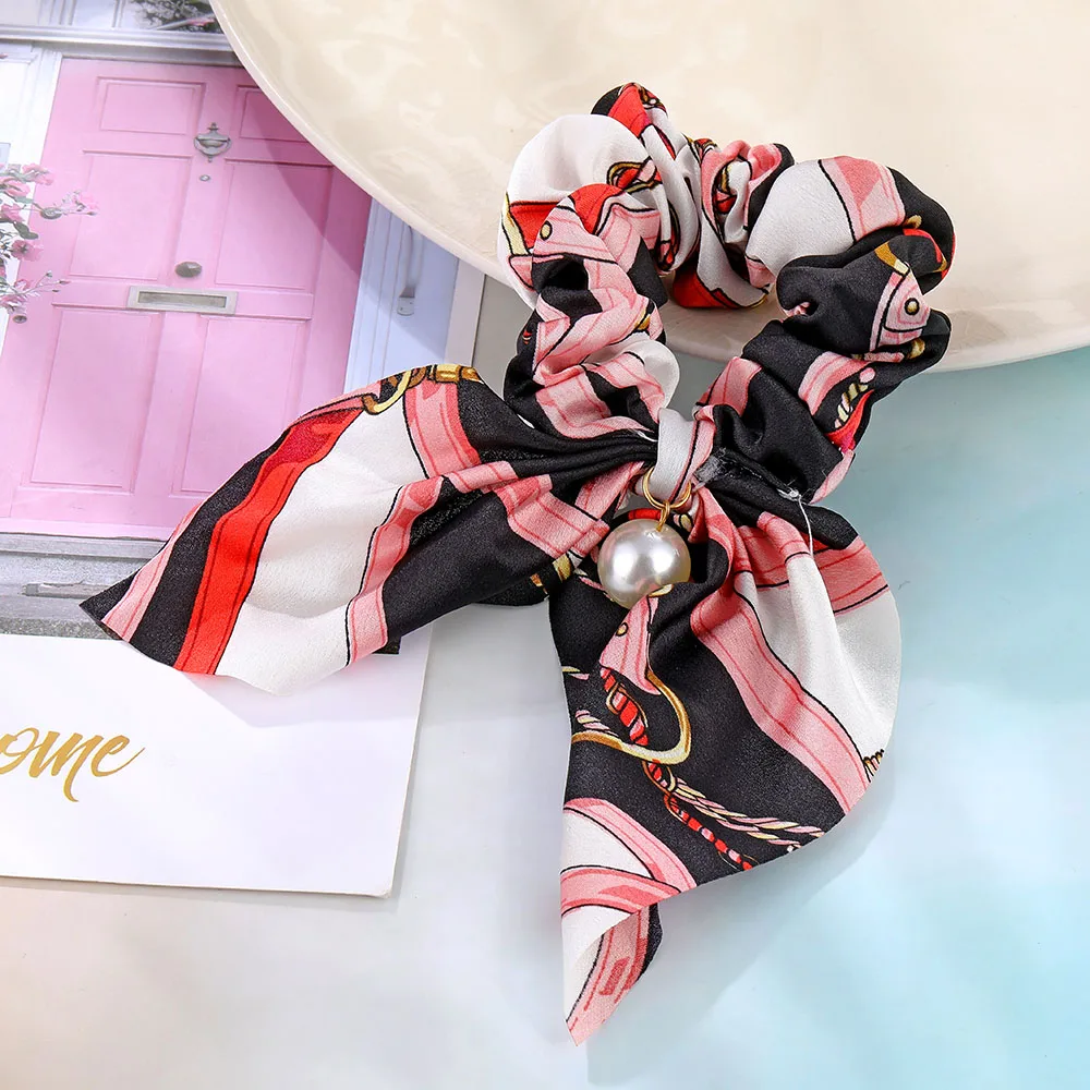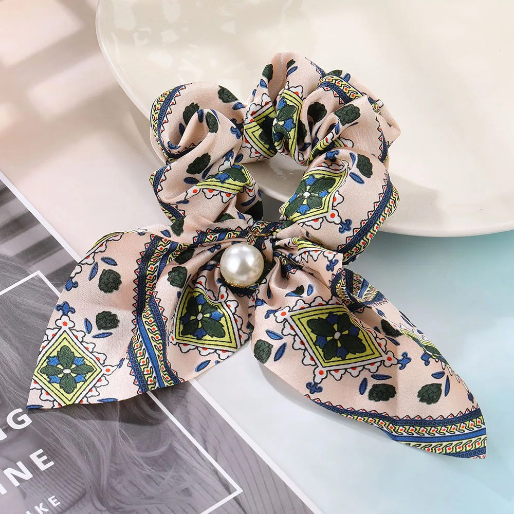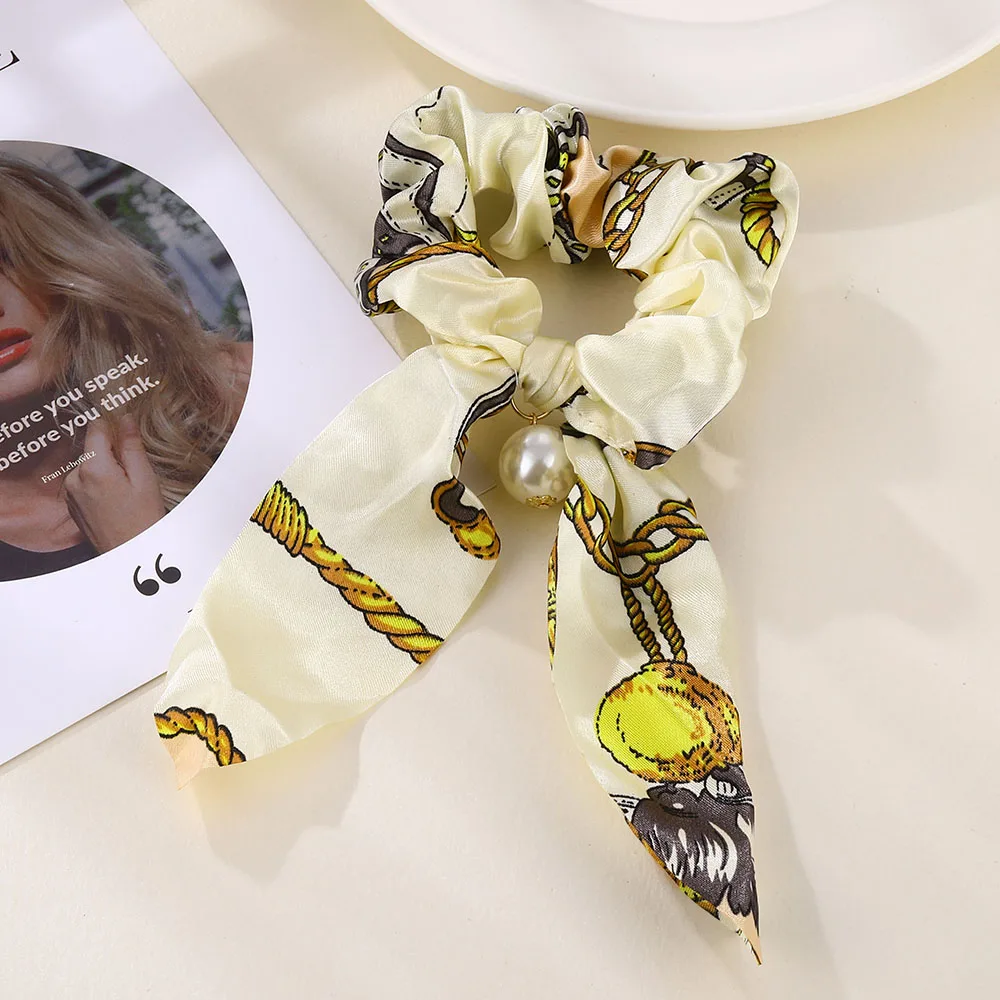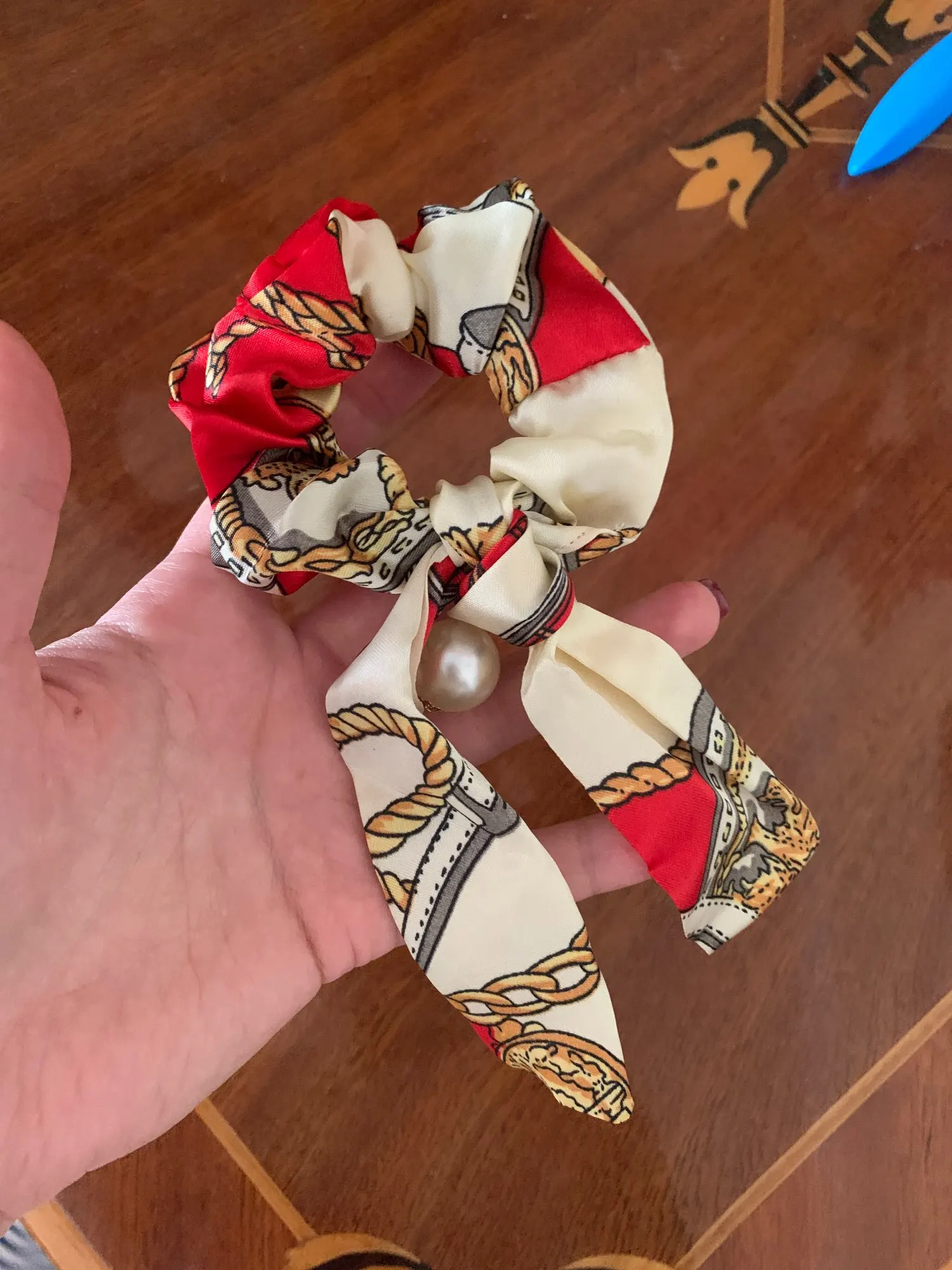 Резинка для волос женская, шифоновая, с жемчугом и бантом