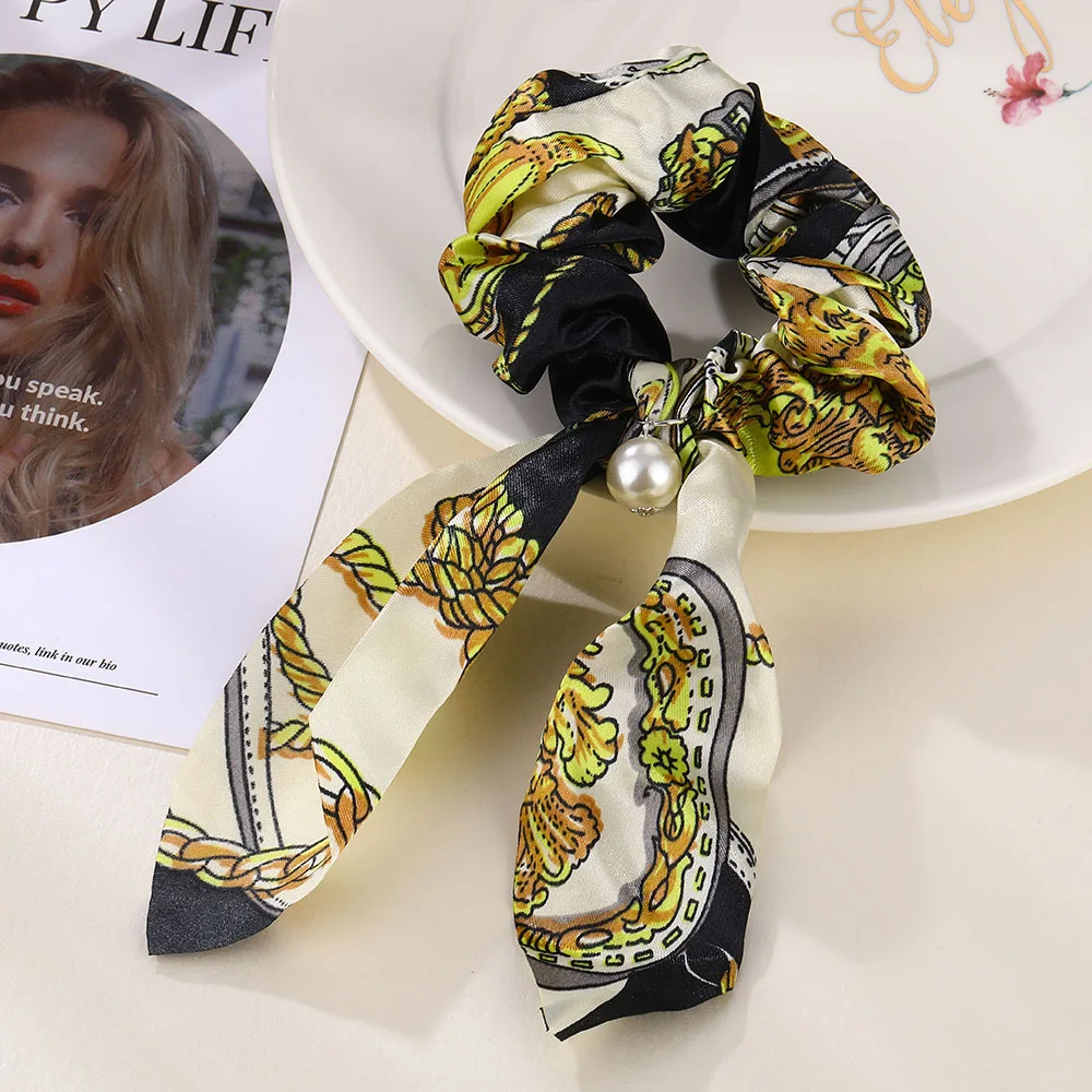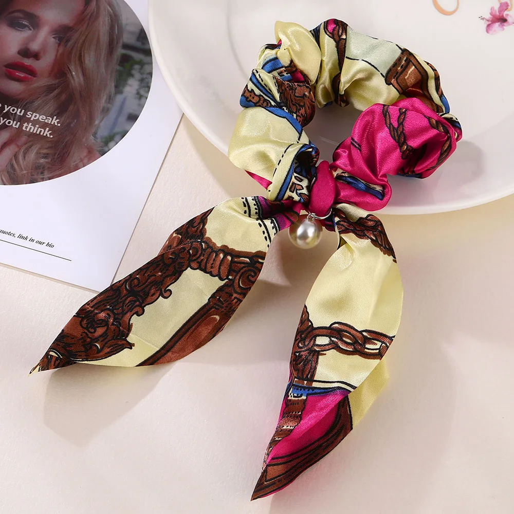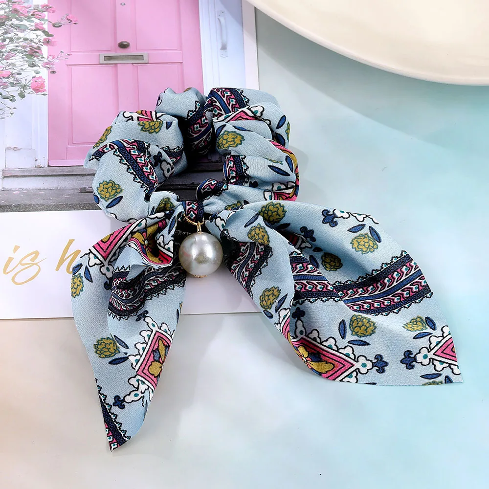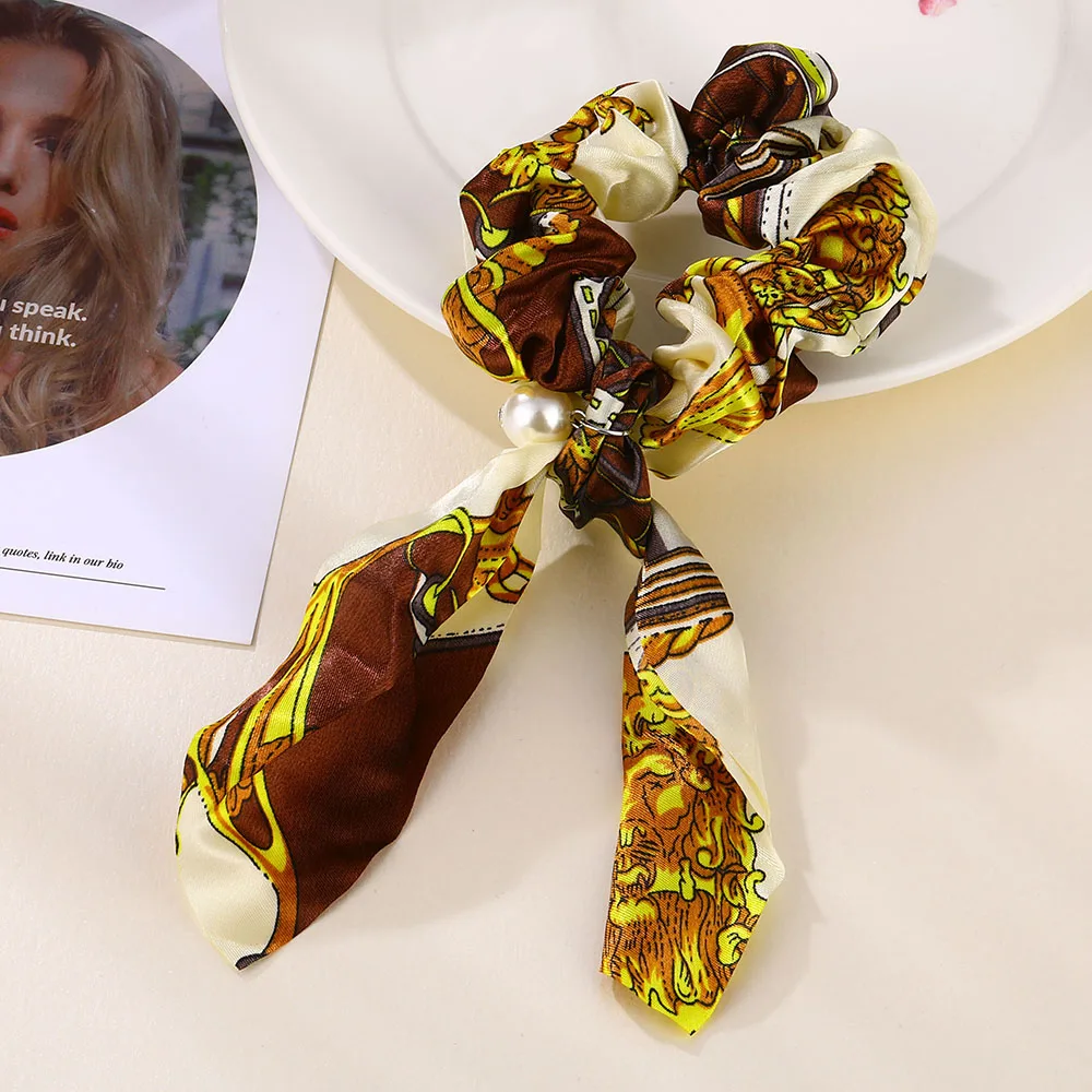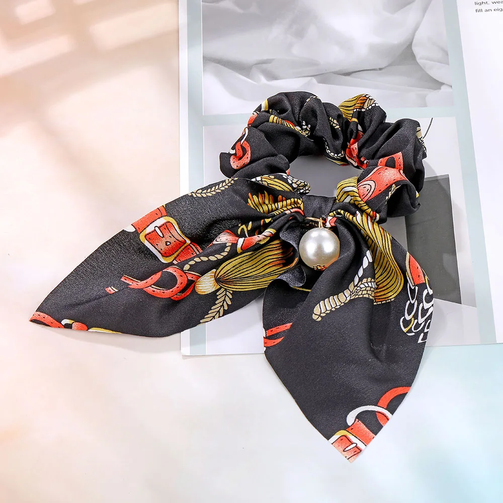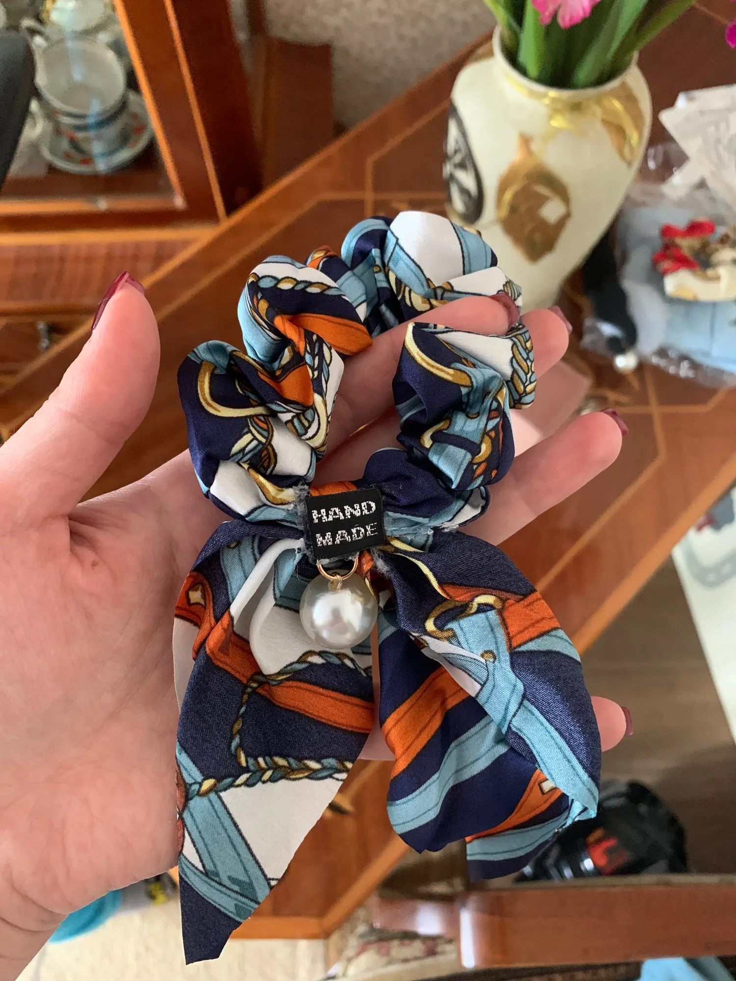 Резинка для волос женская, шифоновая, с жемчугом и бантом