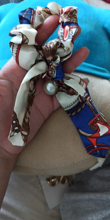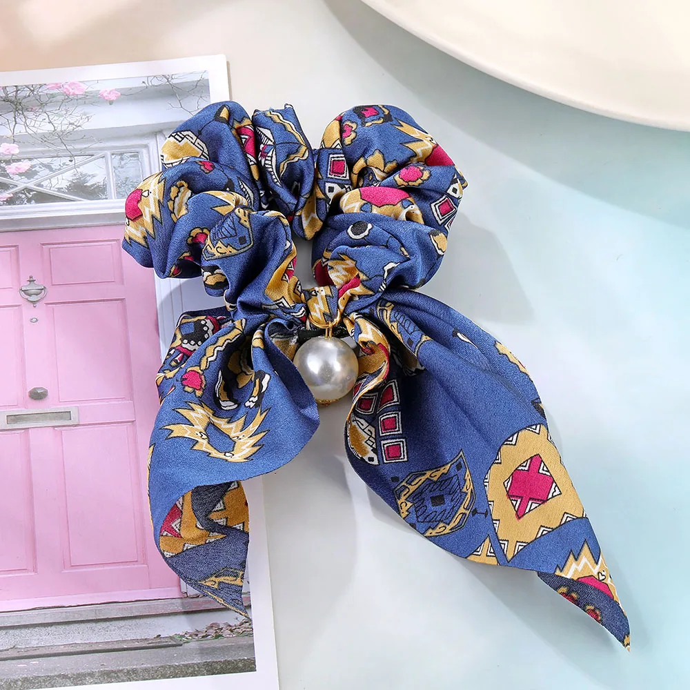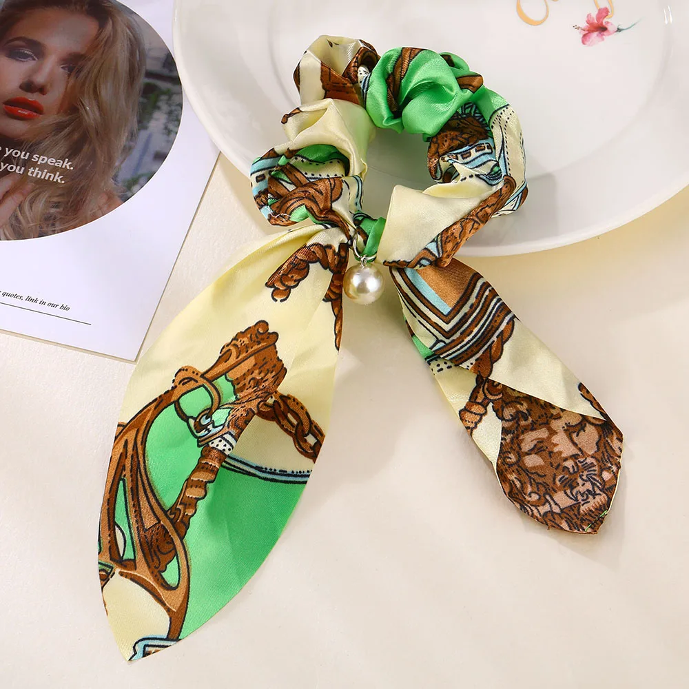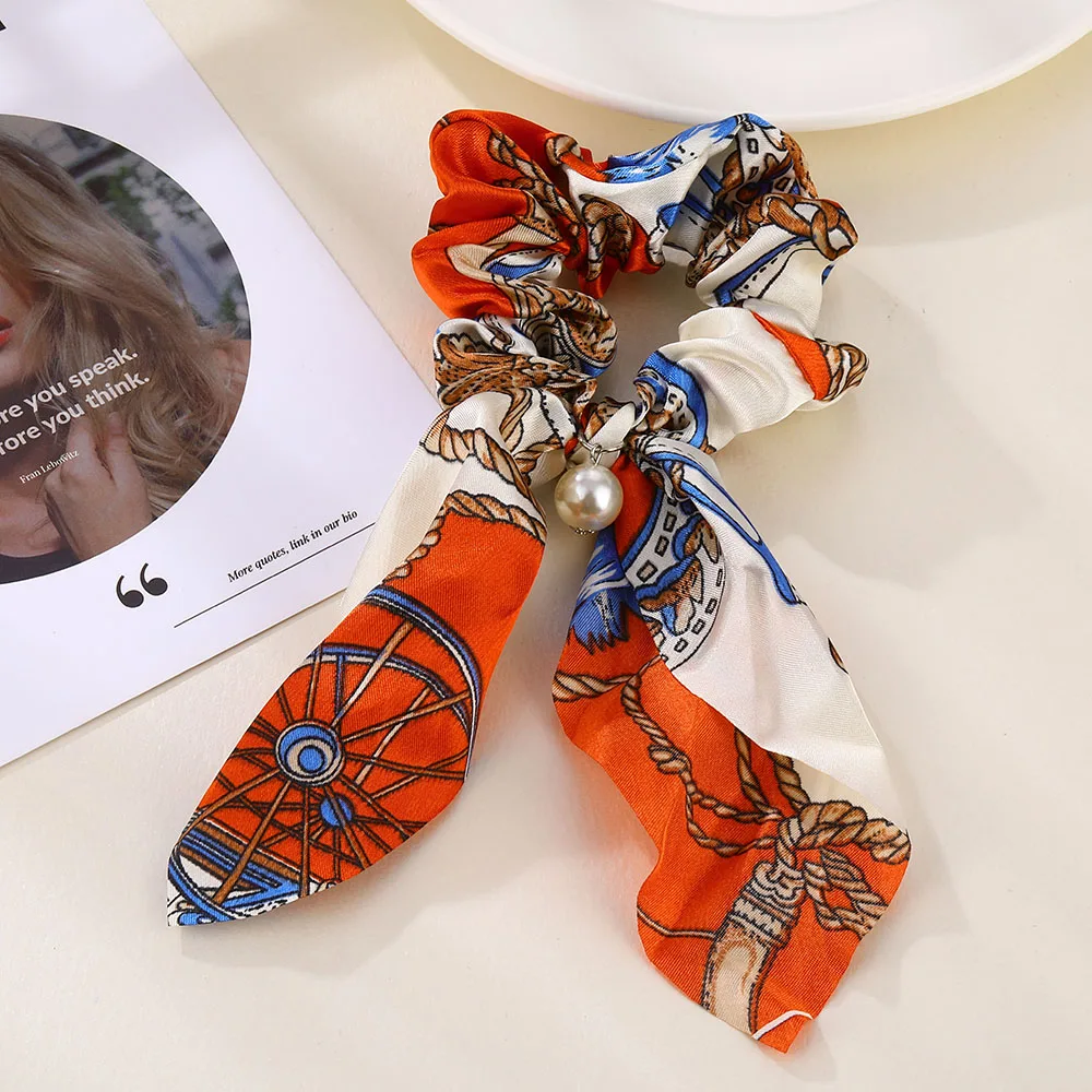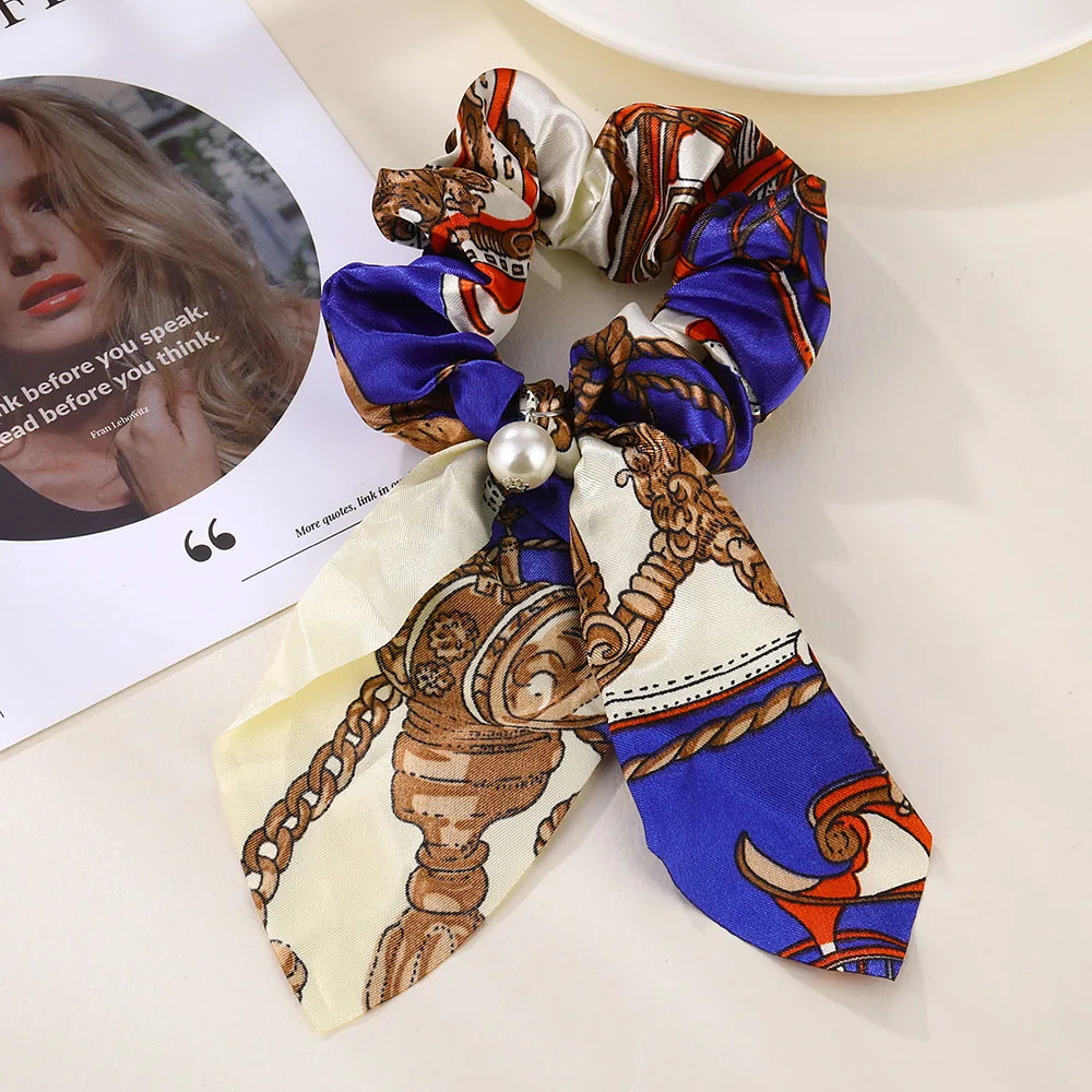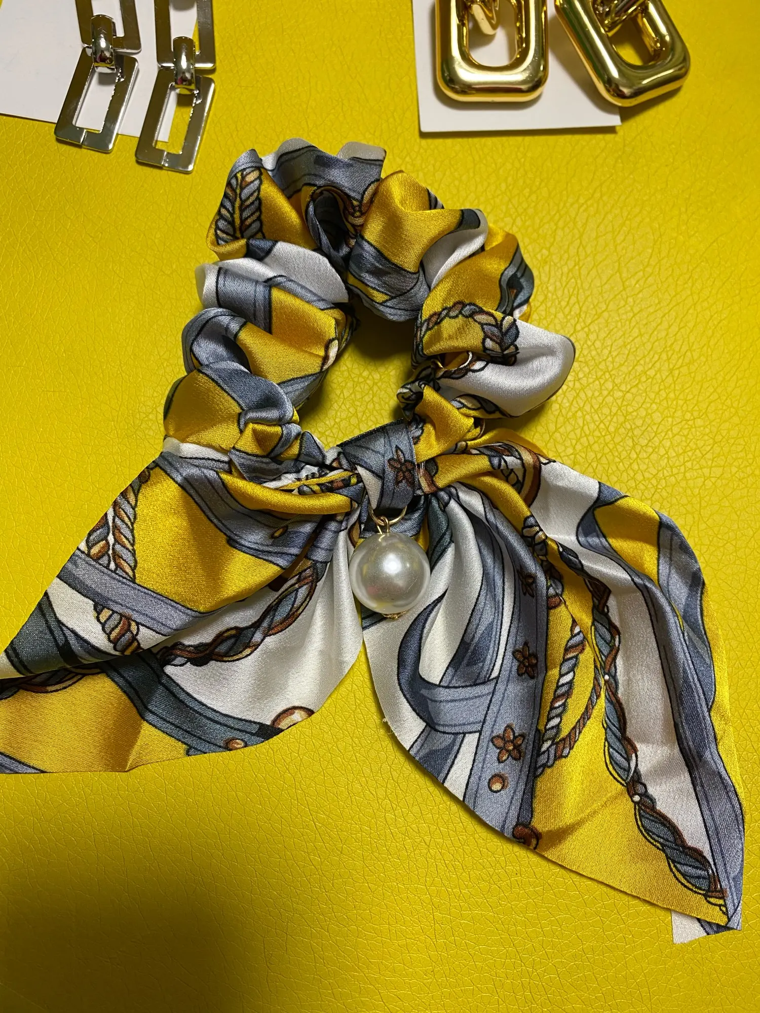 Резинка для волос женская, шифоновая, с жемчугом и бантом