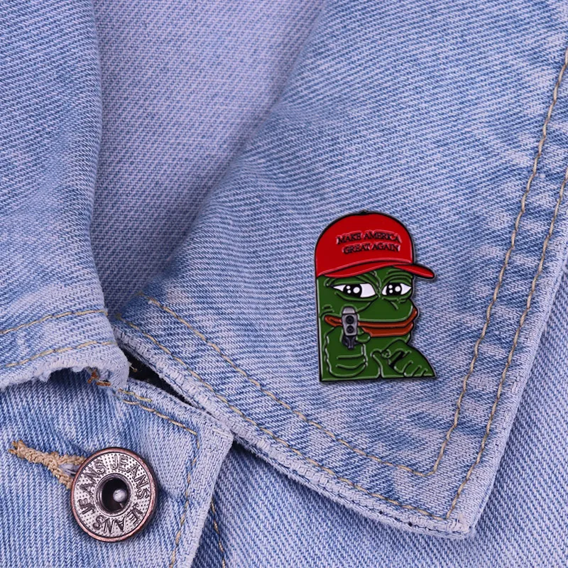 Сделайте Америку великолепной снова, Дональд Трамп, Пепе, булавка на лацкан, волшебный мем, подарок президенту