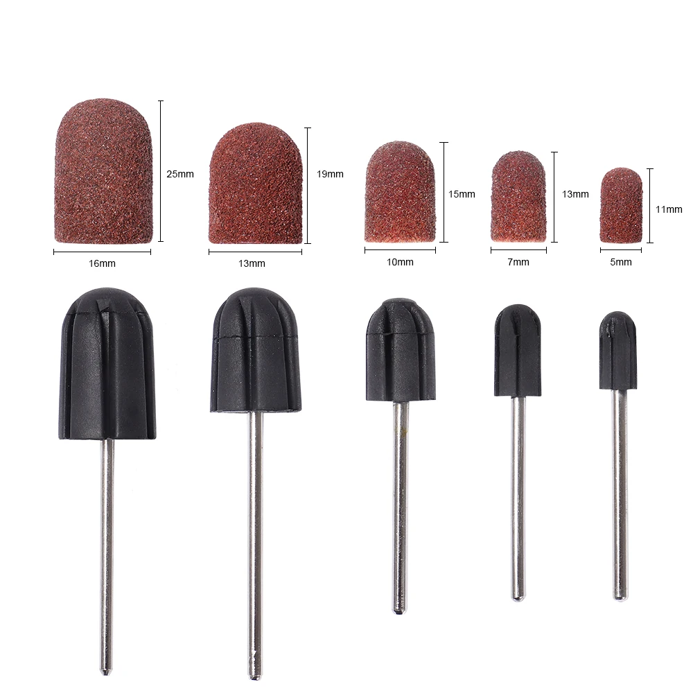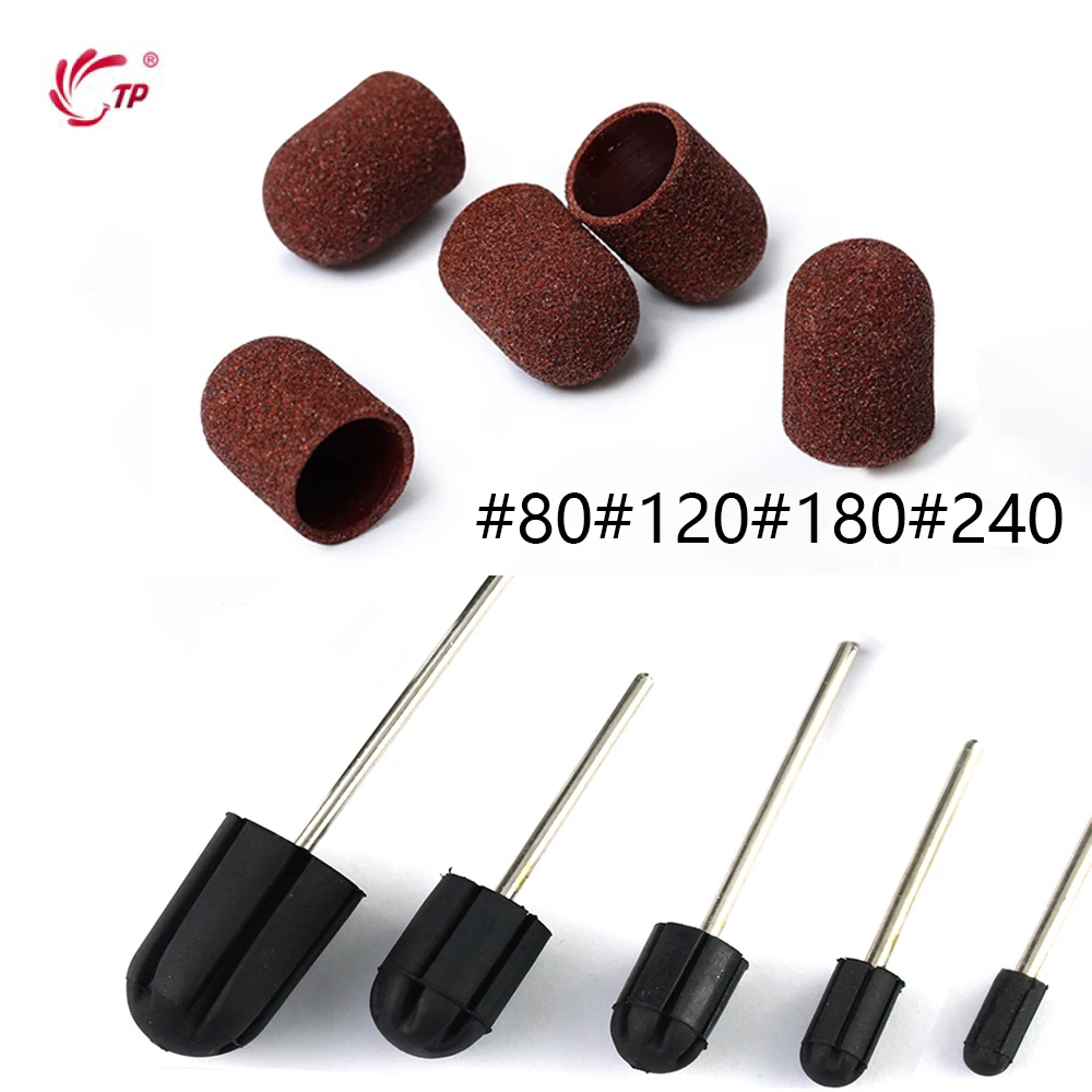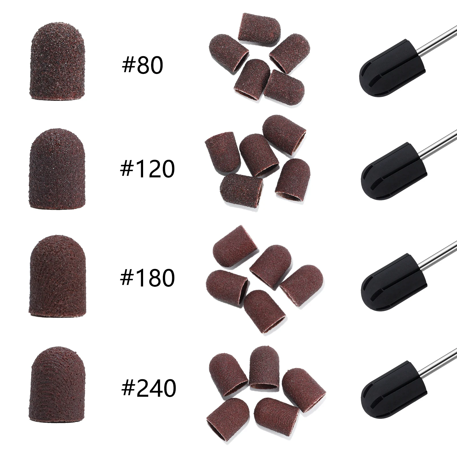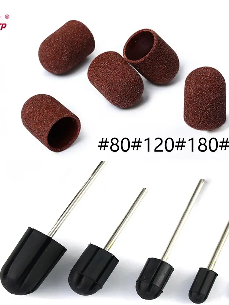 5 размеров, 10 шт., зернистость 80 #, 120 #, 180 #, 240 #, коричневые шлифовальные ленты, квадратный колпачок s, колпачок для маникюра, педикюра, электрическая дрель для ногтей, резак