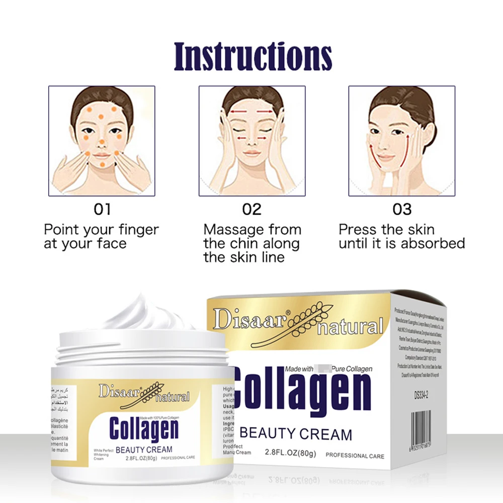 1. Богатый коллаген может эффективно восстанавливать и восстанавливать тонус кожи и мгновенно поставлять влагу и питание для лифтинга и подтягивания эффекта, чтобы оставить вашу кожу мягкой, шелковистой и здоровой, омолаживающей и против морщин. 2. Наполненный несколькими мягкими и нежными питательными веществами, позволяет быстро впитывать кожу на дно с длительным увлажняющим эффектом, не оставляет следов жира и все типы кожи дружелюбны, достаточно нежны для даже чувствительной кожи. 3. Из-за мягкого и светильник крем позволяет свежие ощущения вместо жирных sensation причиной, не раздражает кожу и свежий, с легкостью поможет восстановить яркость обратно в вашу кожу, чтобы показать свою истинную красоту.