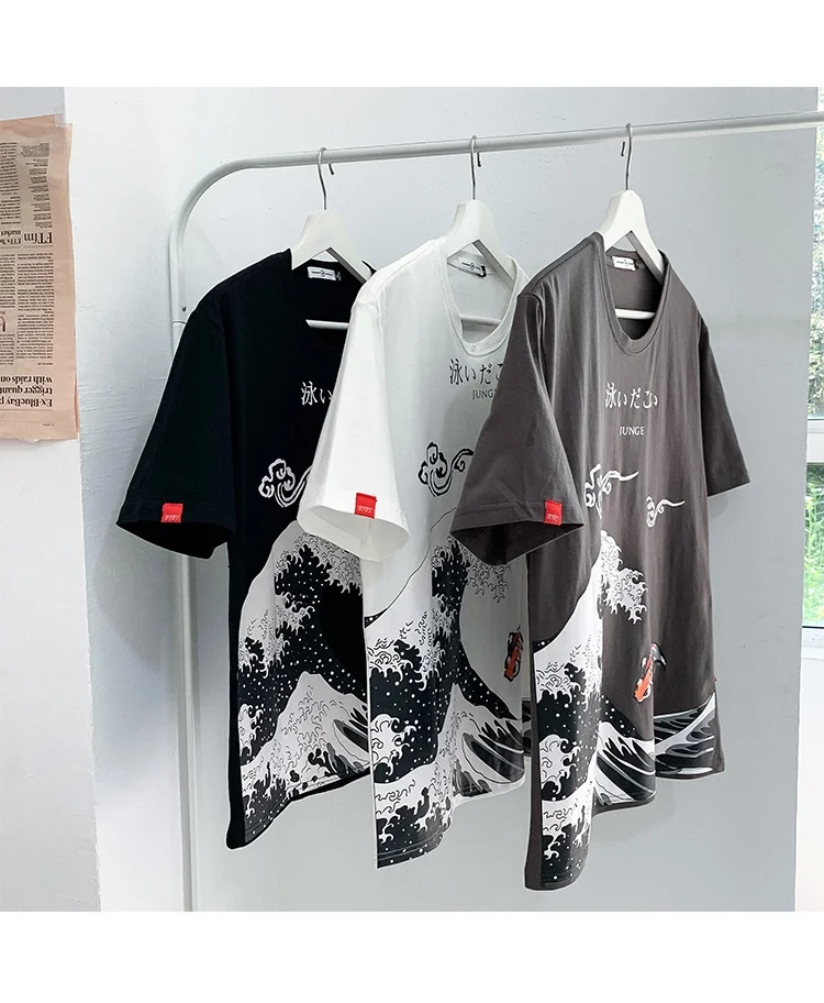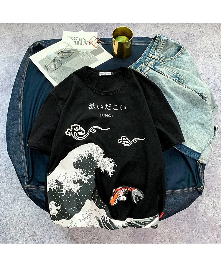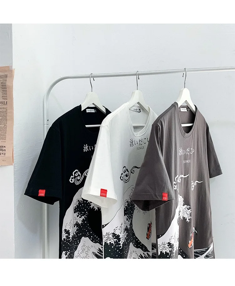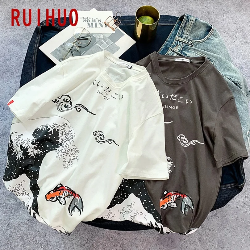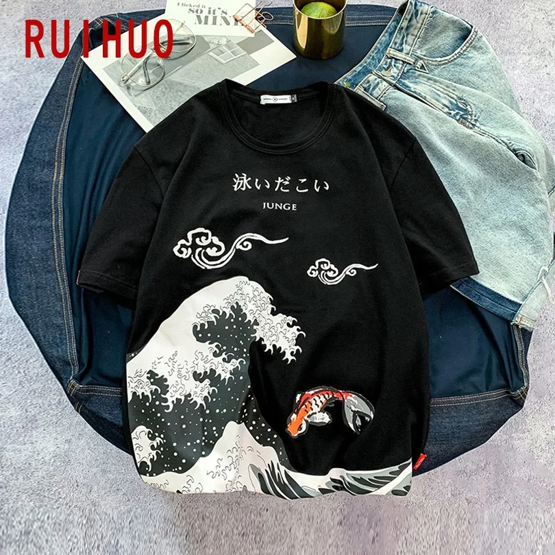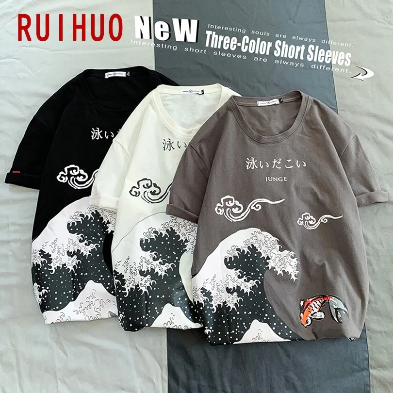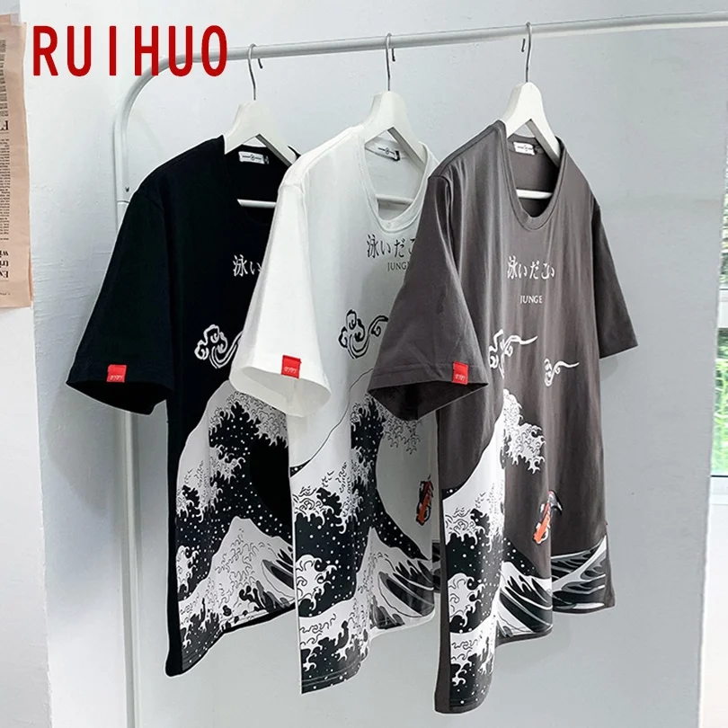 Футболка RUIHUO мужская с волнистым принтом, модная уличная одежда с короткими рукавами, рубашка в стиле хип-хоп, модель 2022 японская