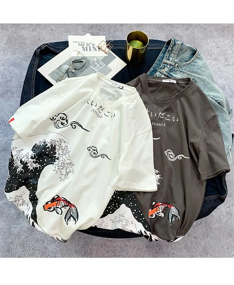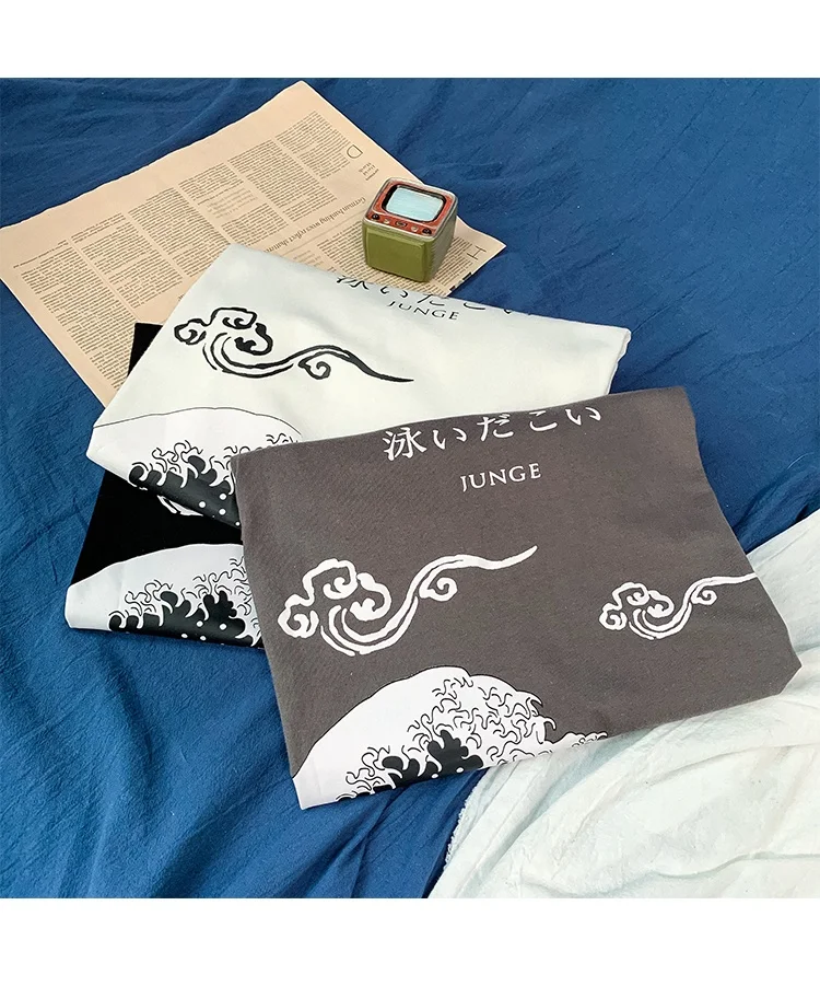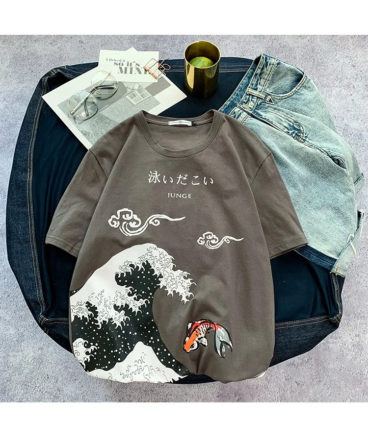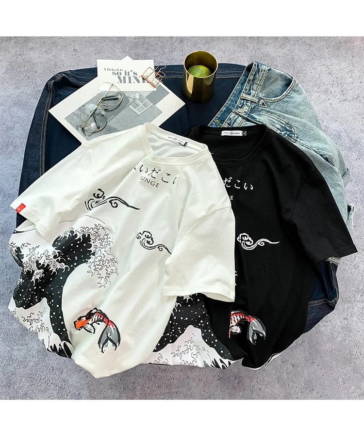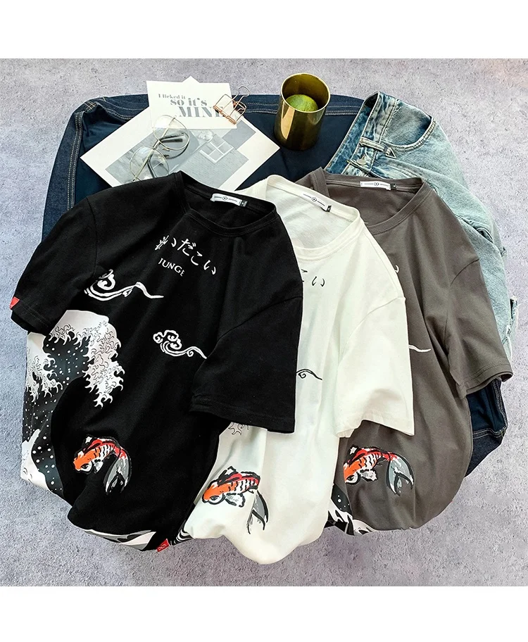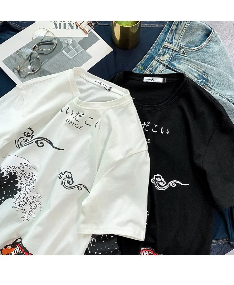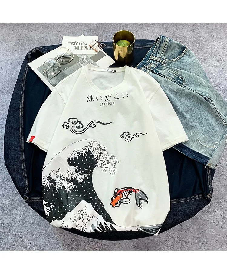 Футболка RUIHUO мужская с волнистым принтом, модная уличная одежда с короткими рукавами, рубашка в стиле хип-хоп, модель 2022 японская