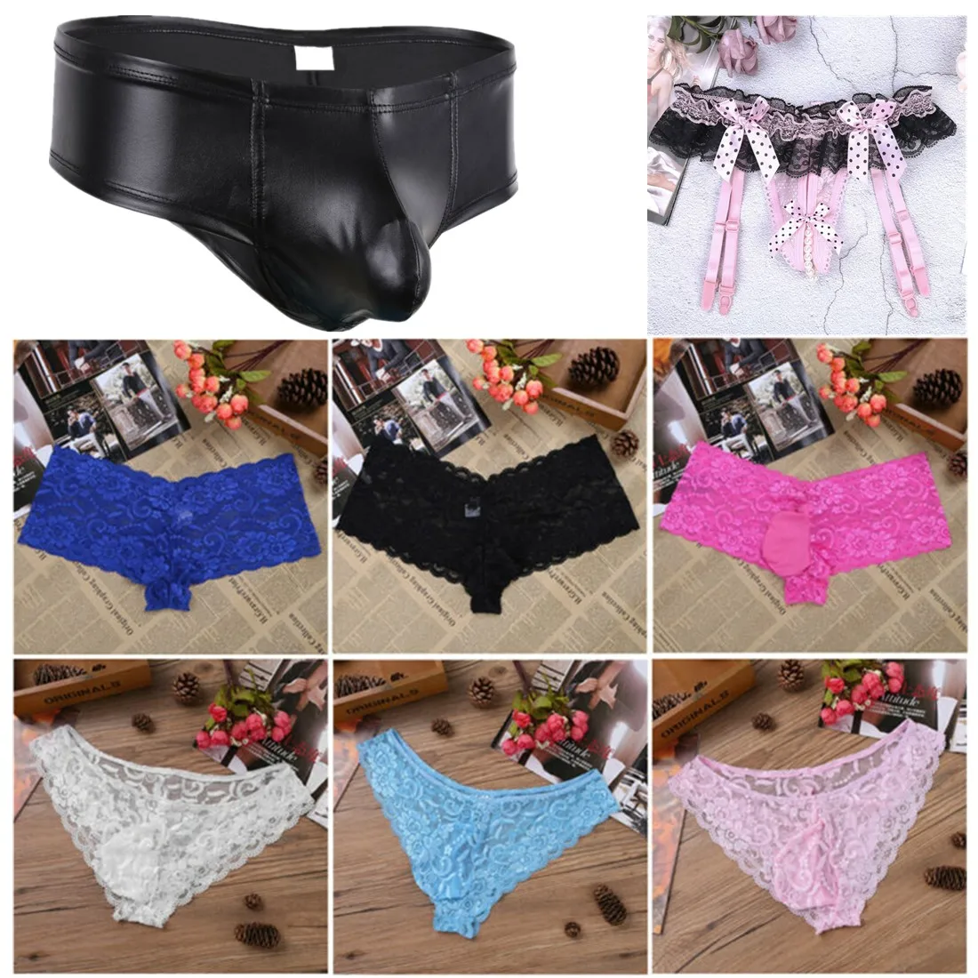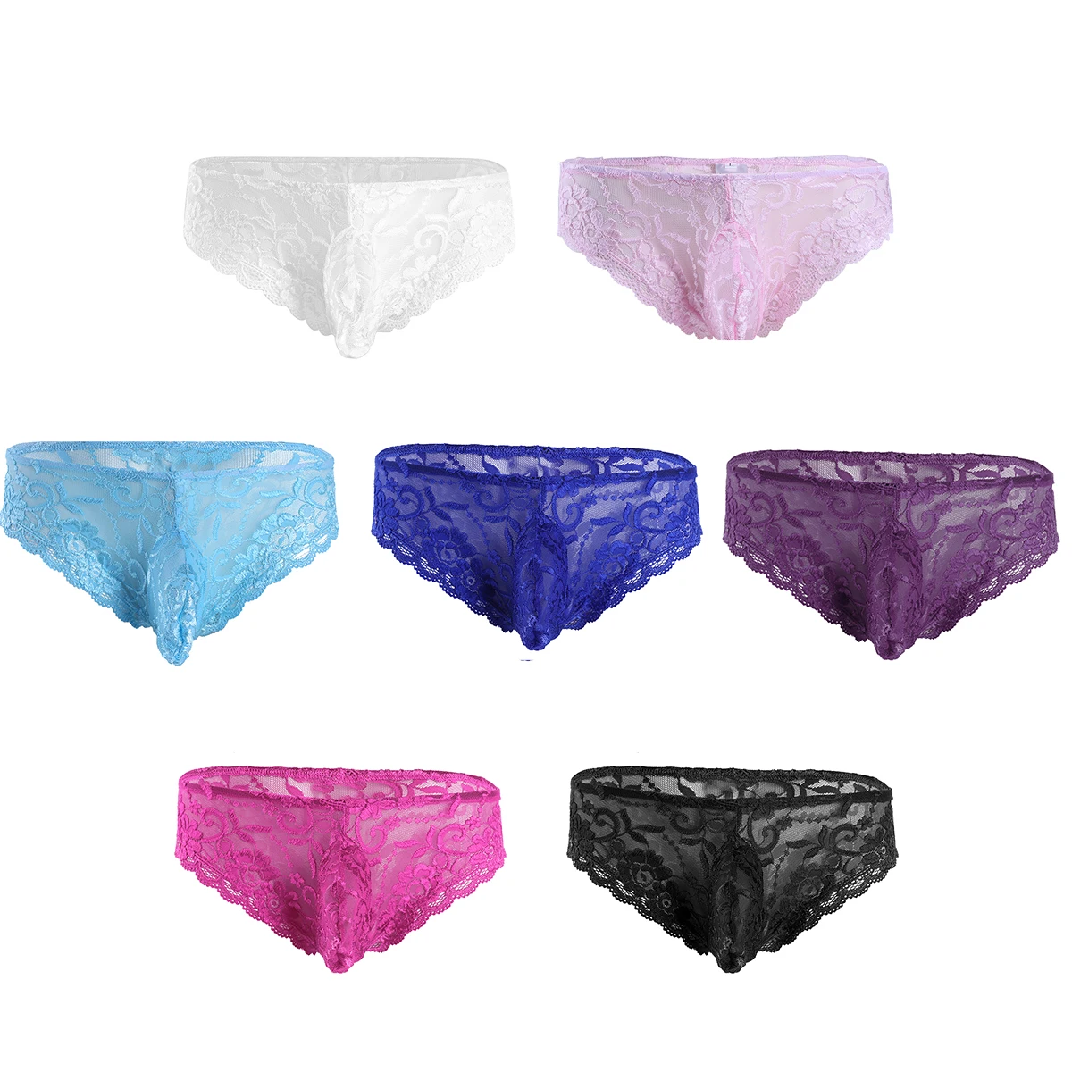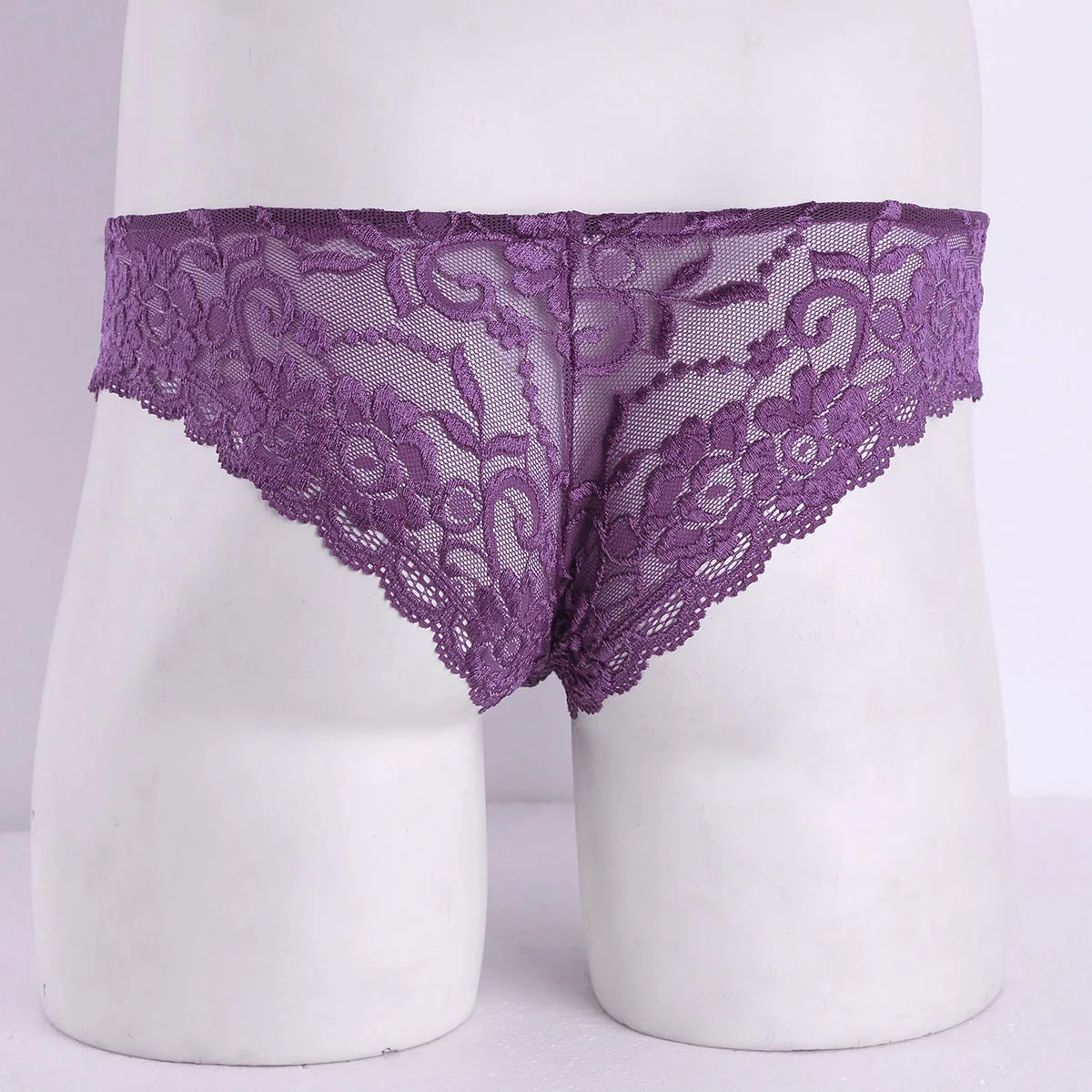 Трусы Стринги мужские сетчатые кружевные с мешочком с низкой посадкой