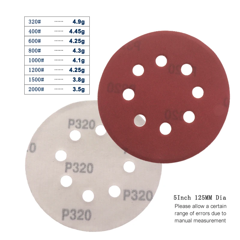 Шлифовальные диски 125 мм, 8 отверстий, круглые красные самоклеящиеся кольца, зернистость наждачной бумаги 320-2000, 80 шт.