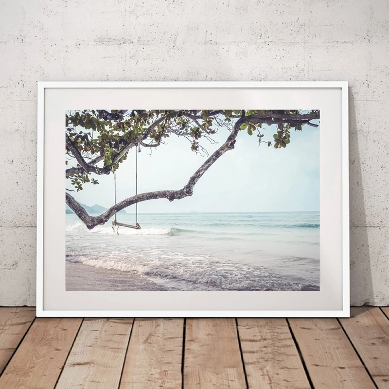 ThemeBeach Swing Photo Poster Canvas Art Prints