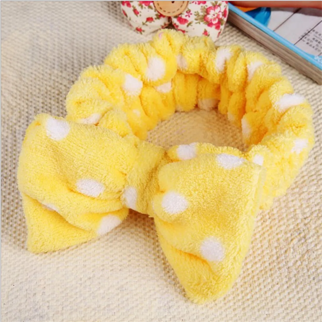 Повязка на голову YJ Женская флисовая с бантом, однотонная повязка на голову в полоску, в горошек, для мытья лица и макияжа, аксессуары для волос в виде тюрбана