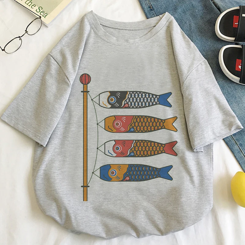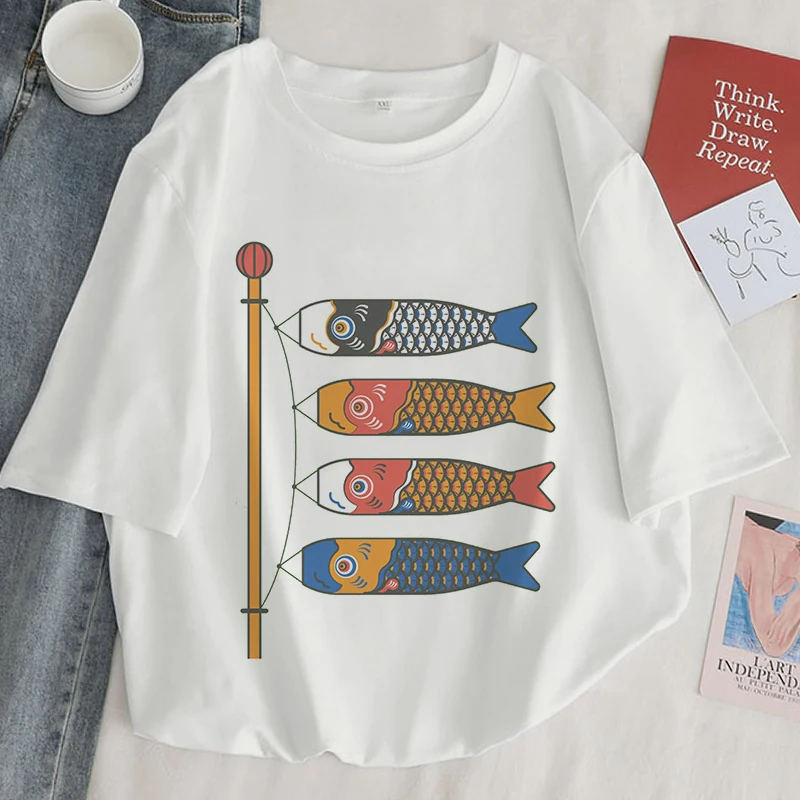 Футболка женская с графическим принтом рыбок и кои, белая, в стиле Харадзюку