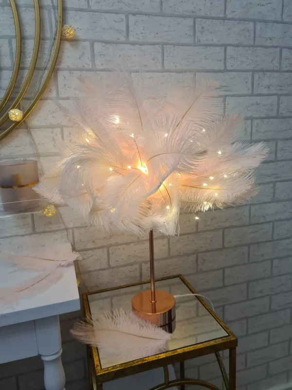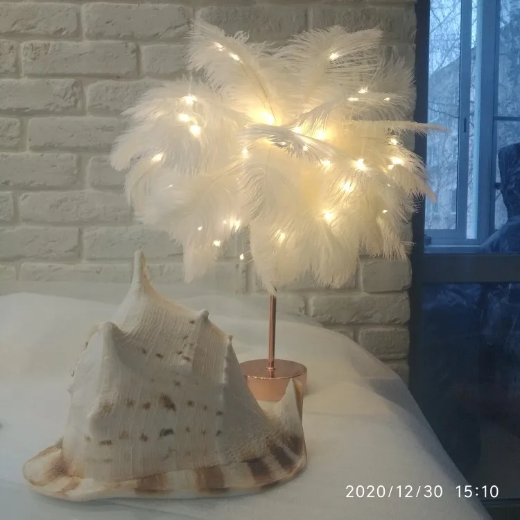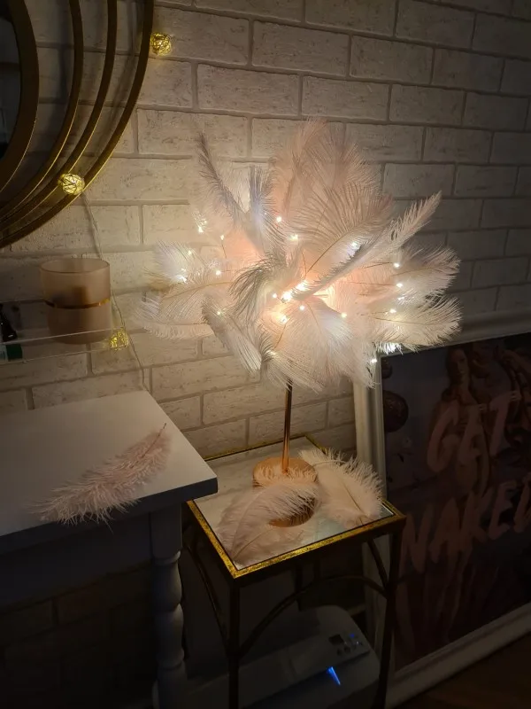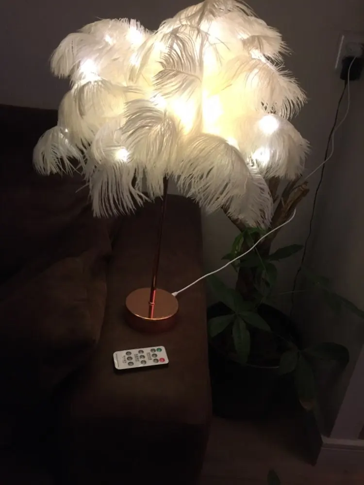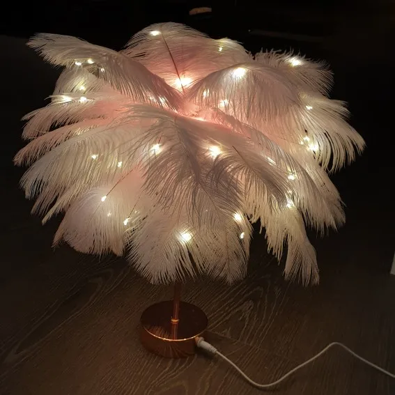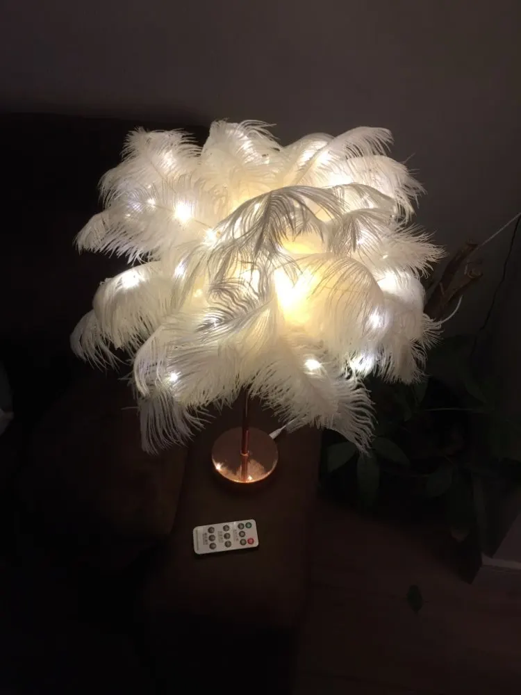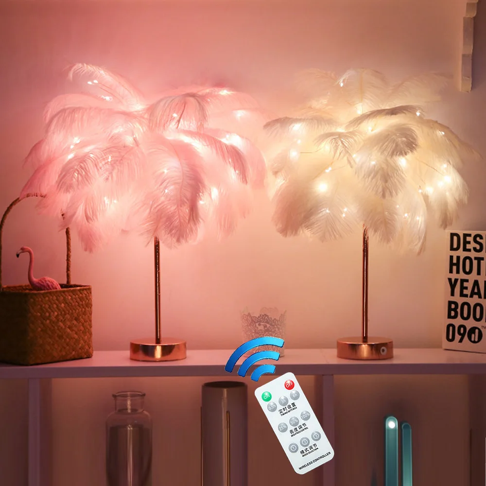 Настольная лампа с перьями и пультом дистанционного управления, креативный теплый светильник сделай сам с питанием от USBбатарейки AA, украшение для дома, свадьбы, спальни