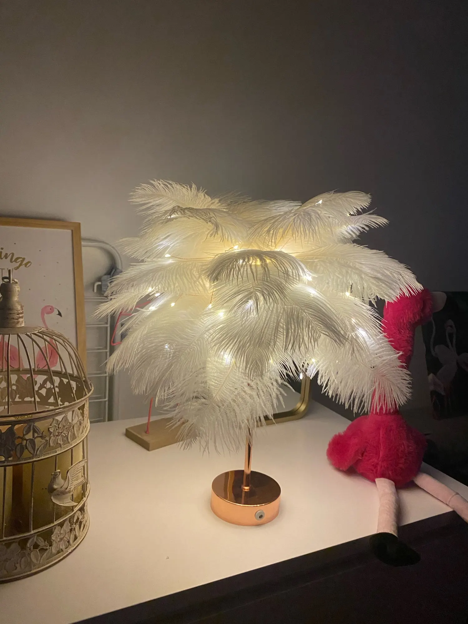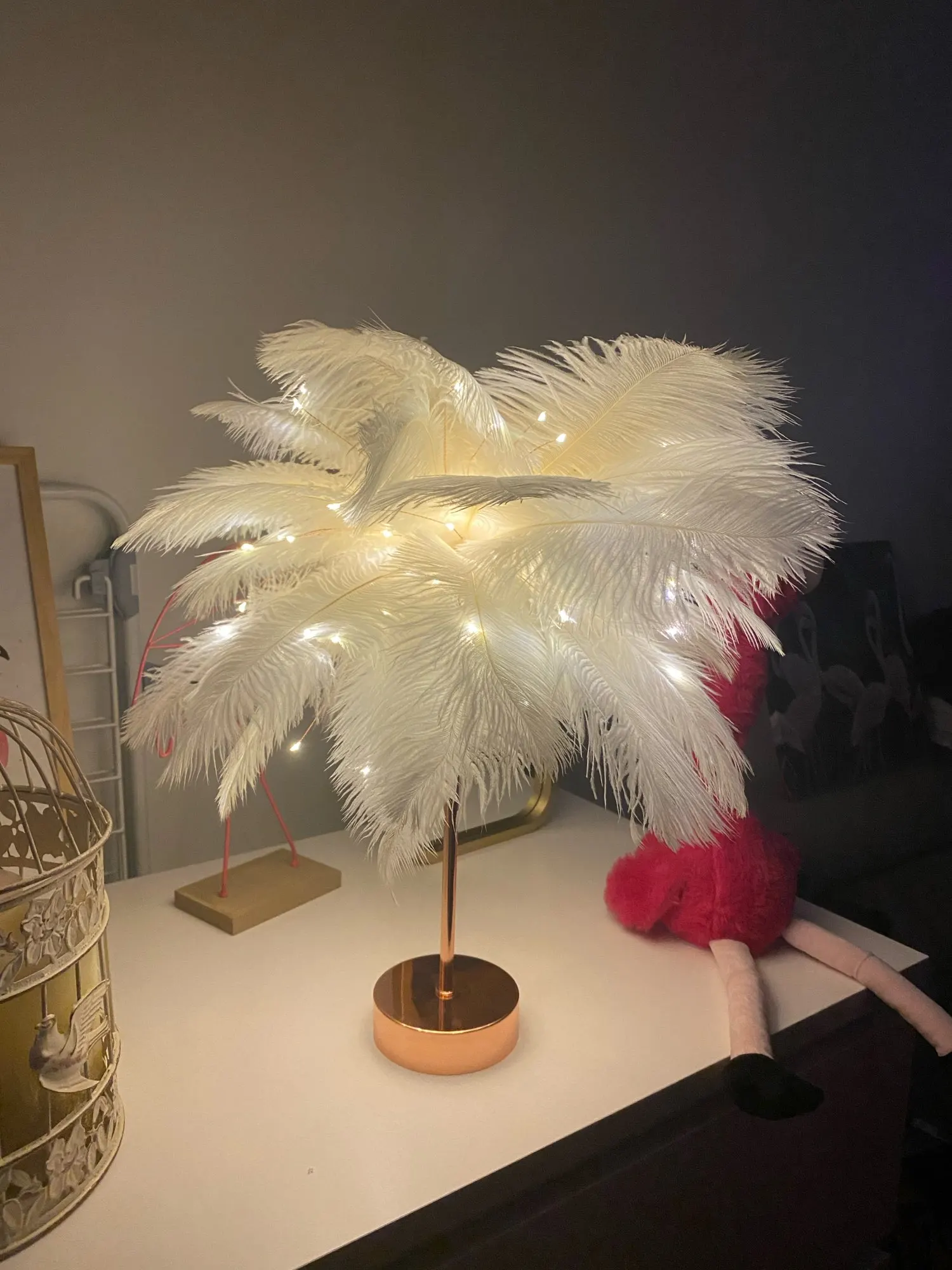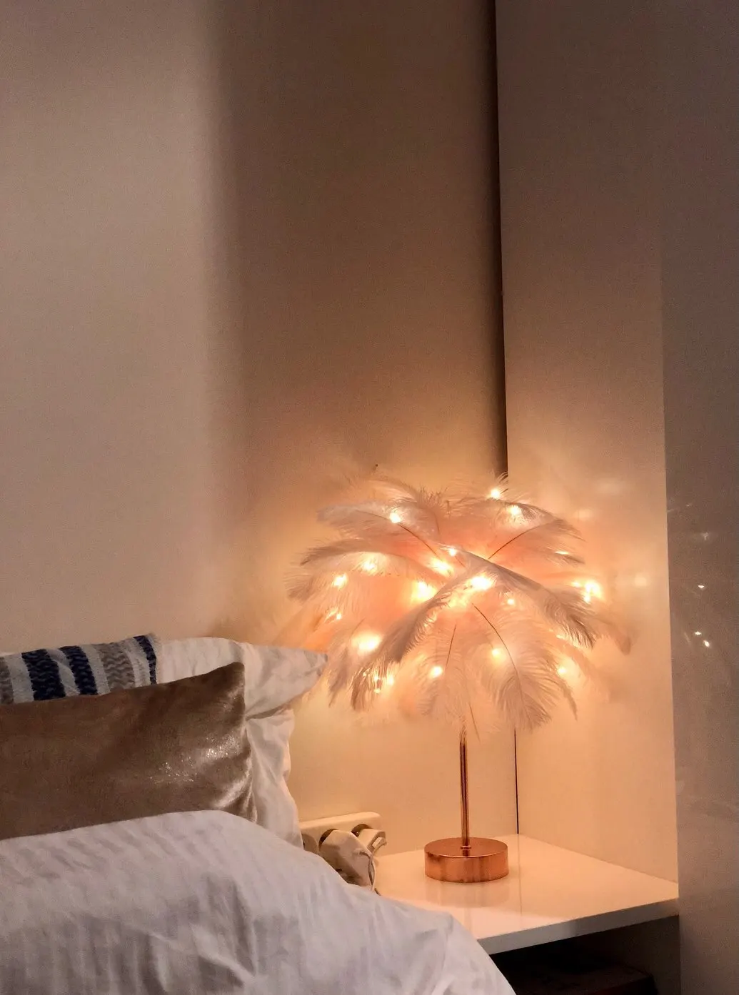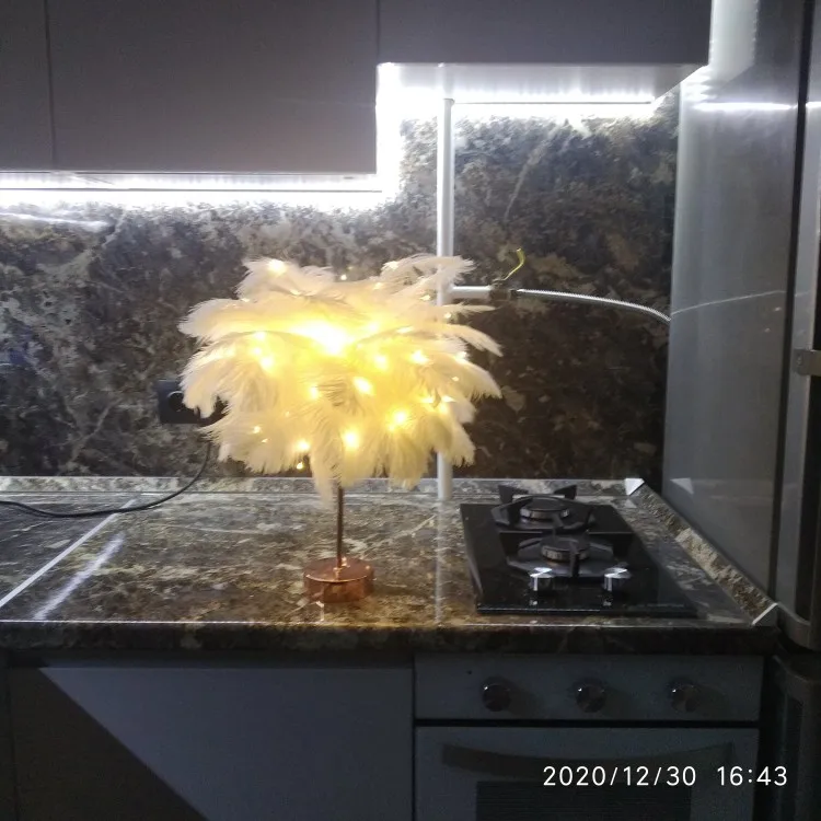 Настольная лампа с перьями и пультом дистанционного управления, креативный теплый светильник сделай сам с питанием от USBбатарейки AA, украшение для дома, свадьбы, спальни