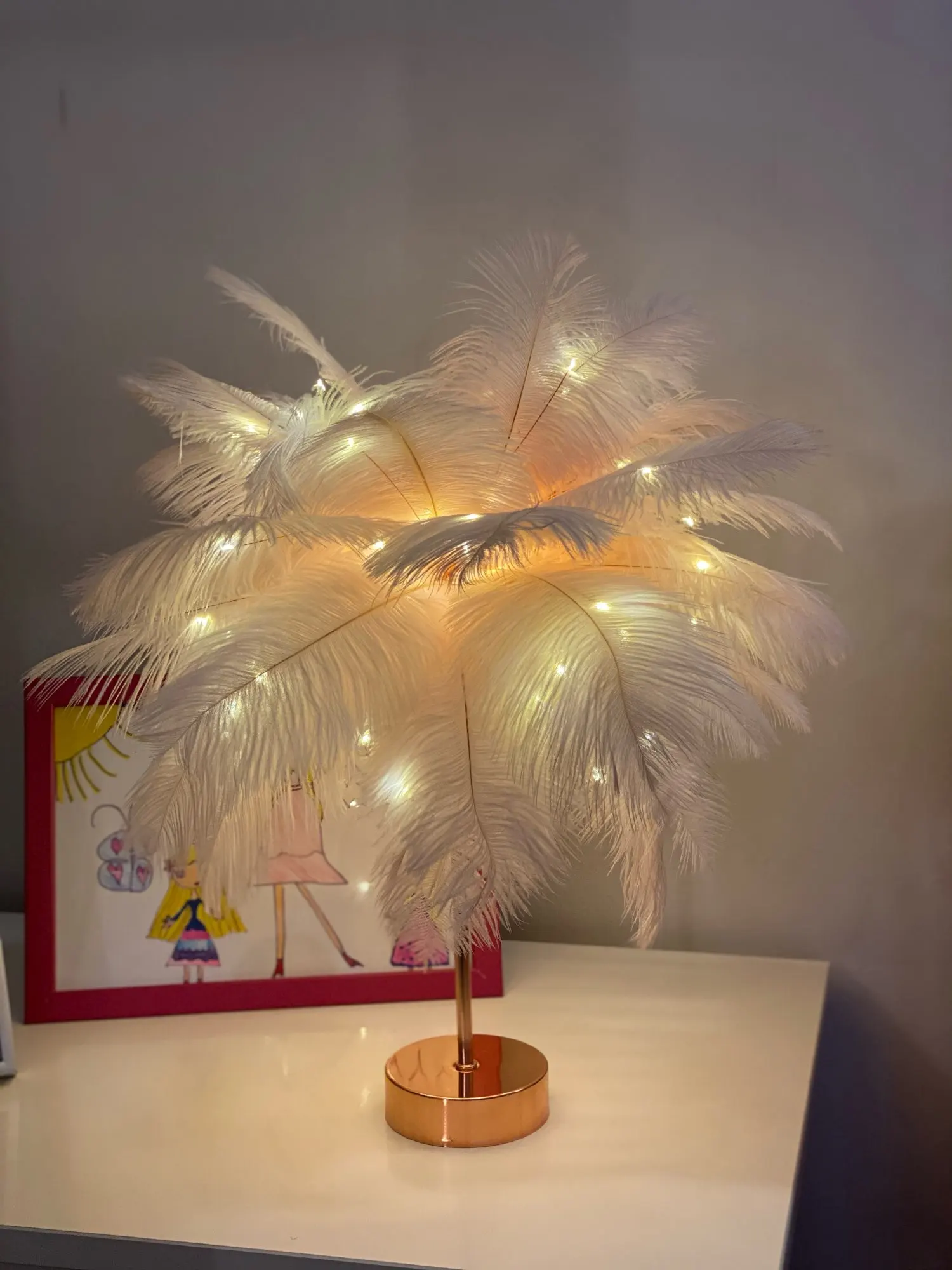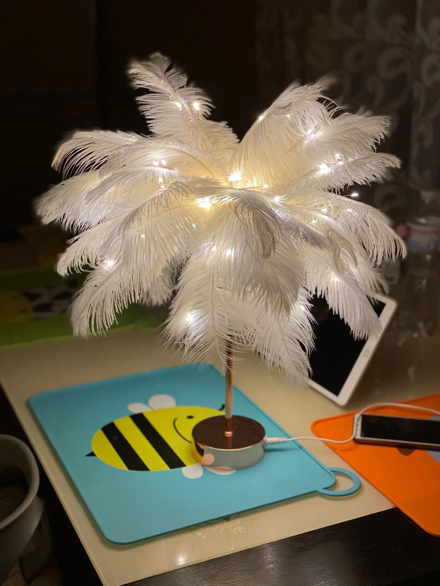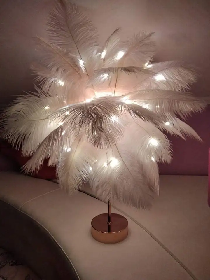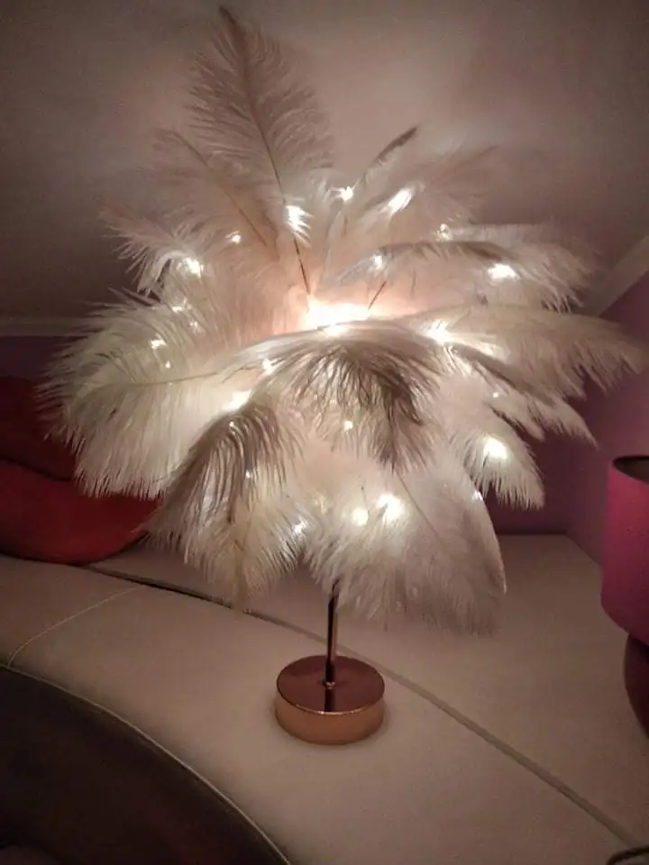 Очень хорошая лампа Крепление немного длинное Много перьев Пульт дистанционного управления с некоторыми функциями (таймер на другой), хороший Декоративный подарок, хорошая идея