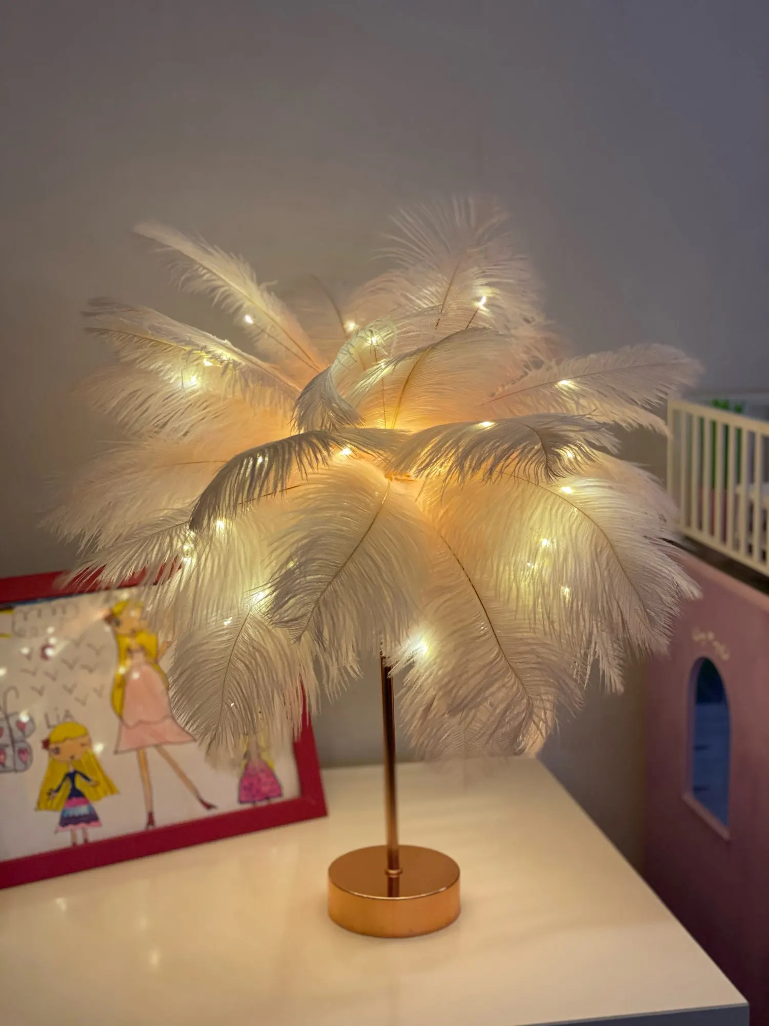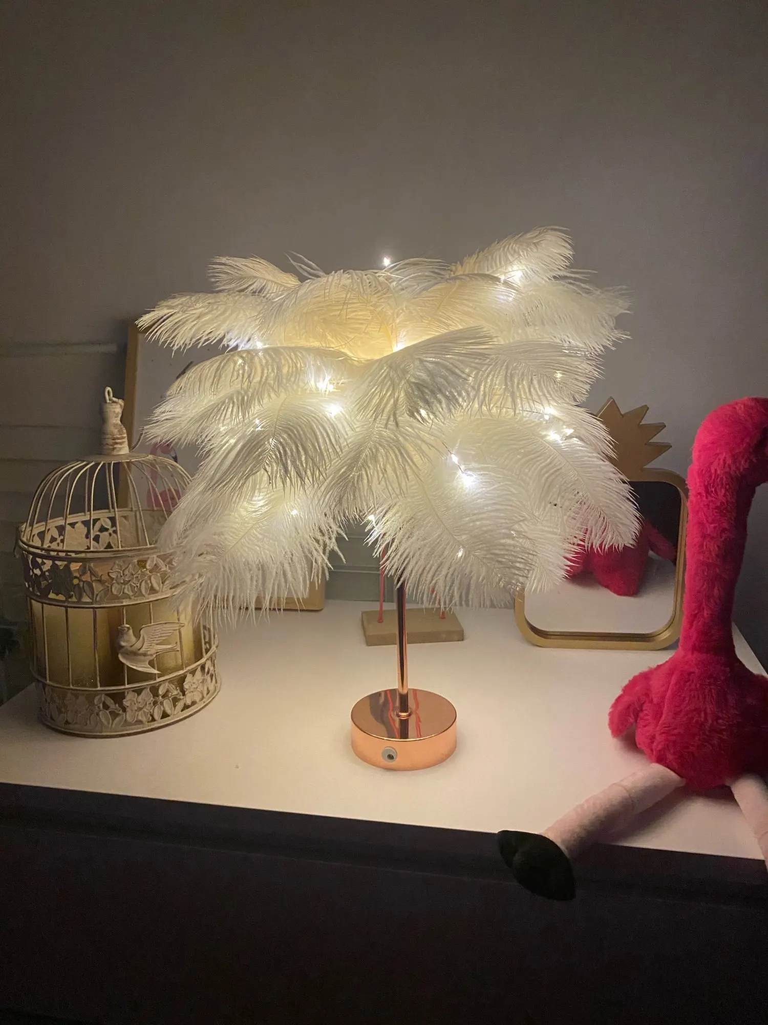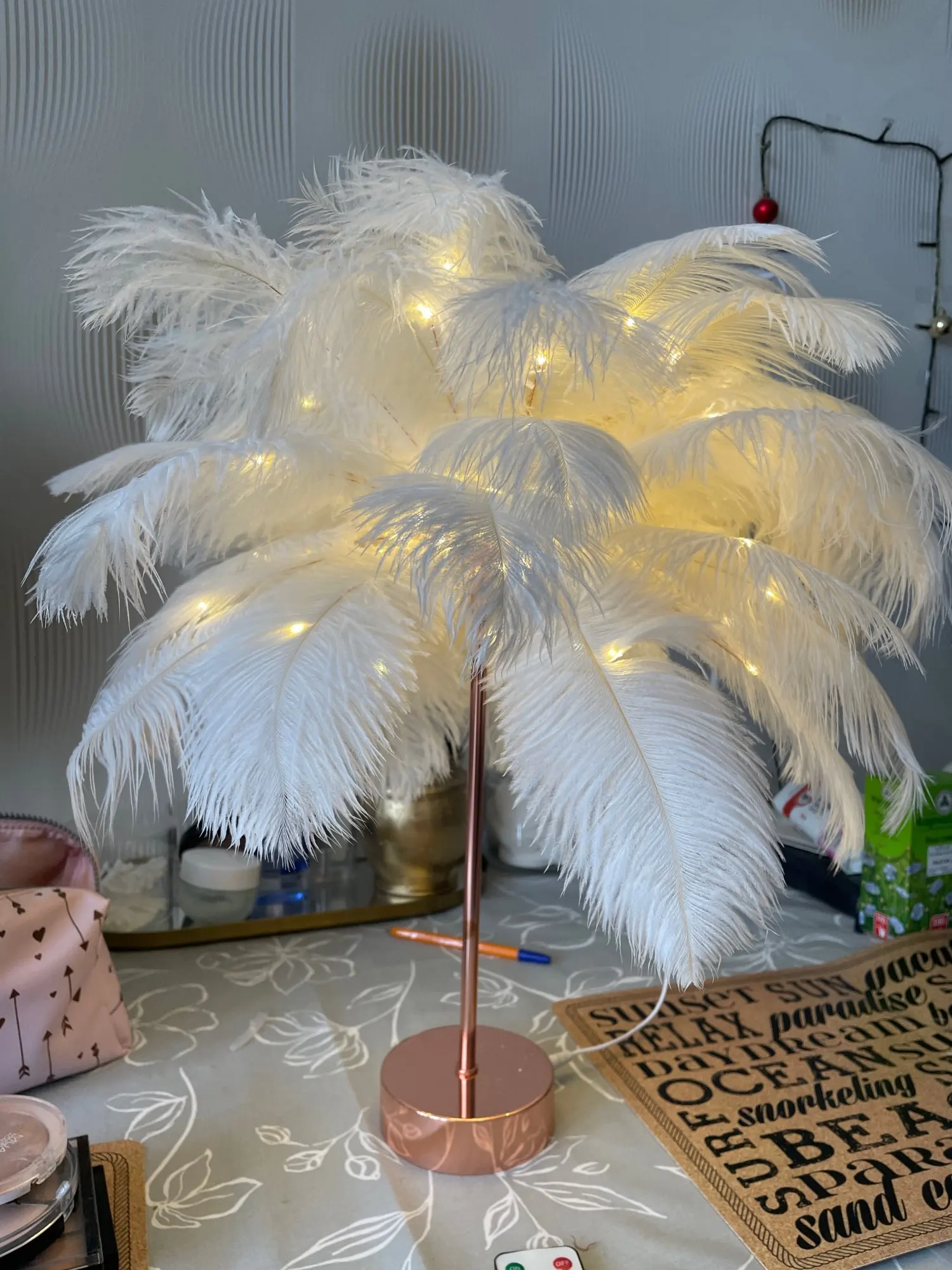 Очень хорошая лампа Крепление немного длинное Много перьев Пульт дистанционного управления с некоторыми функциями (таймер на другой), хороший Декоративный подарок, хорошая идея
