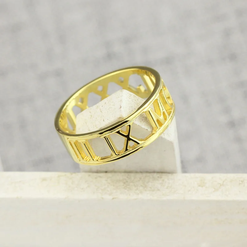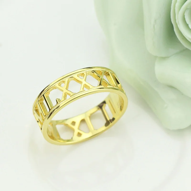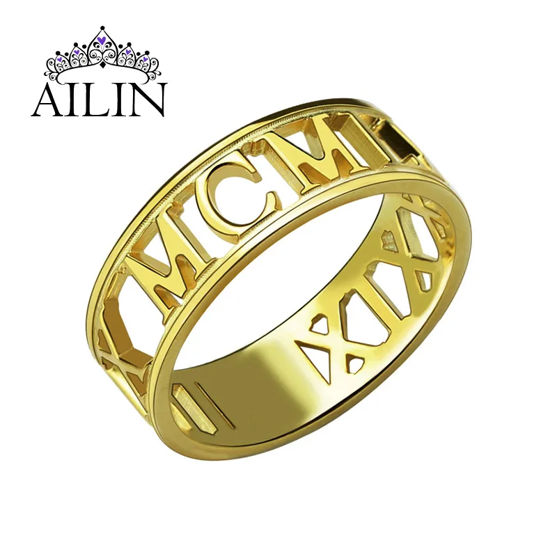 AILIN 18K позолоченные кольца из нержавеющей стали для женщин и мужчин, индивидуальное кольцо с римскими цифрами и датой, индивидуальный подарок, ювелирные изделия, Bague Homme