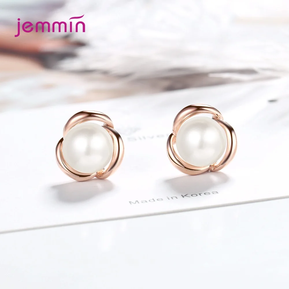 Женские маленькие серьги-пусеты в виде лотоса, из настоящего серебра 925 пробы, 10 мм, серьга с жемчугом вечерние ювелирные изделия для подарка на день рождения